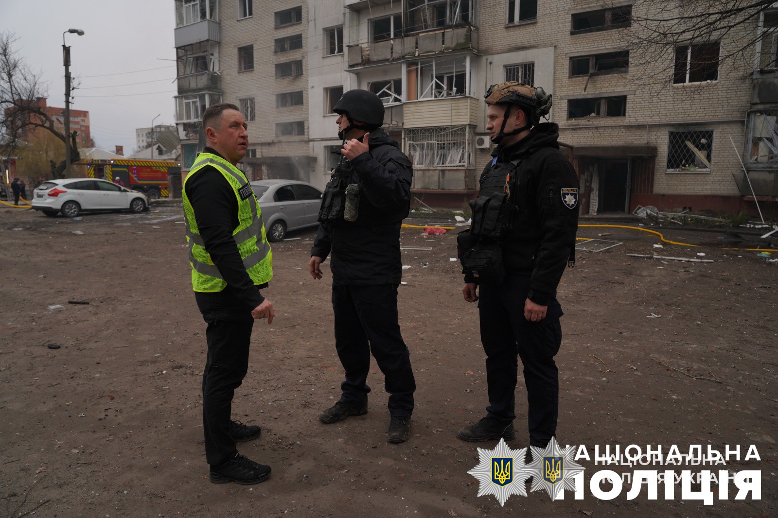 На місці влучання працюють усі екстрені служби, зокрема поліція, вибухотехніки, рятувальники та медики. Проводяться рятувальні роботи, ліквідація наслідків атаки, а також документування воєнного злочину.