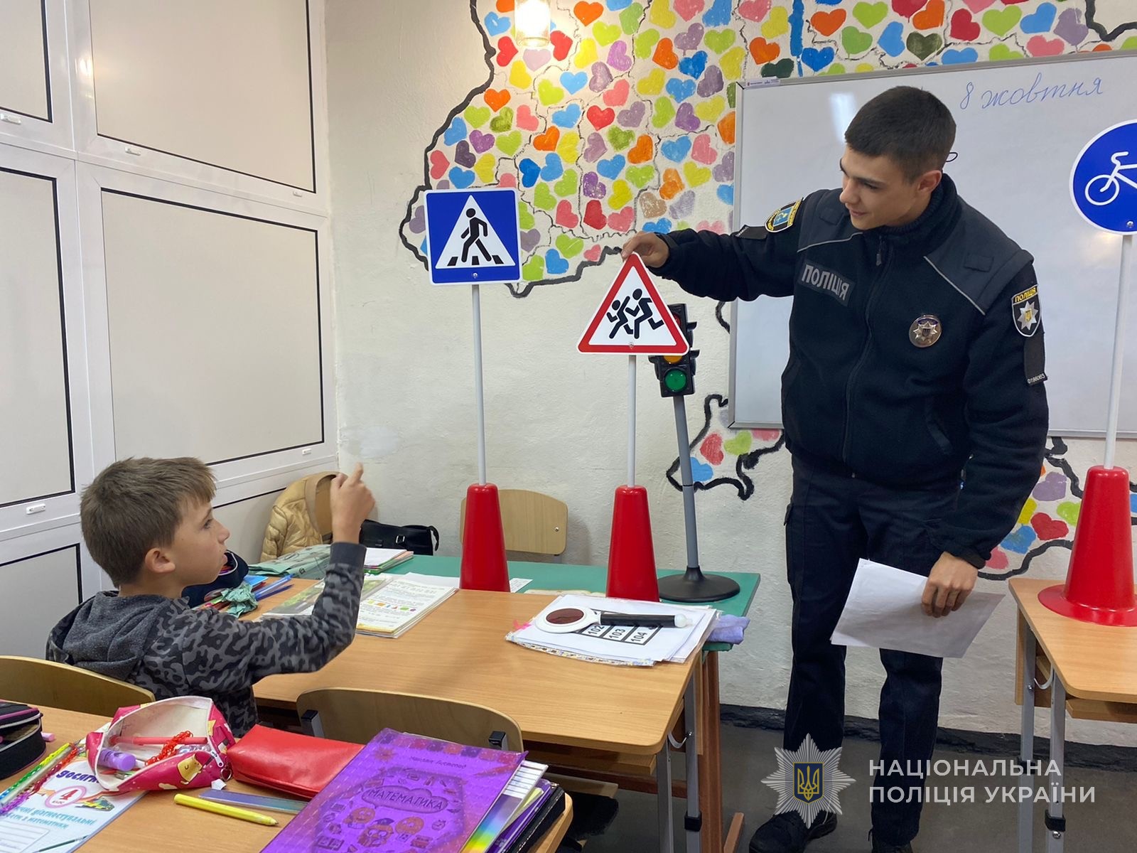 Під час зустрічі правоохоронець розповів дітям, як працює світлофор та що означають його сигнали, де і як правильно переходити проїжджу частину. Учні також дізналися про значення основних дорожніх знаків і правила безпечної їзди на велосипедах. Поліцейський навів приклади типових ситуацій, які можуть трапитися на вулиці, та разом із дітьми розібрав, як правильно діяти в кожному випадку.