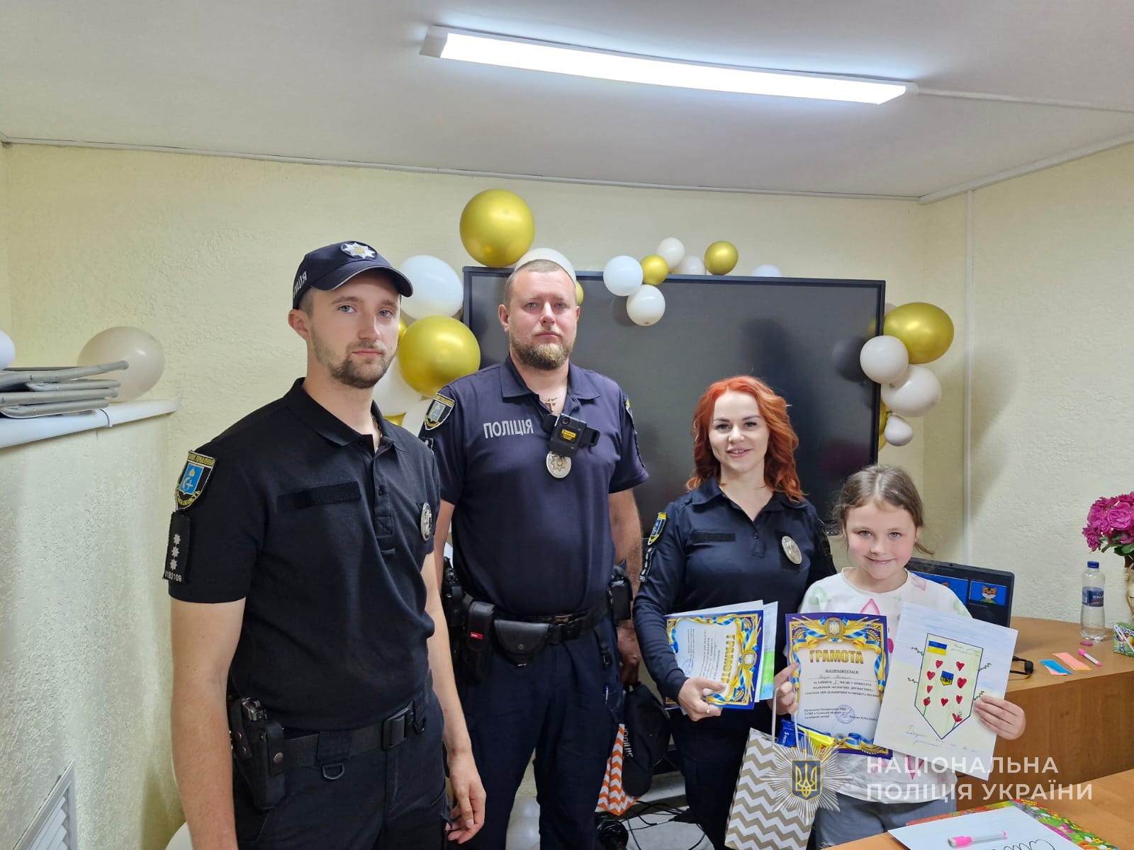 Працівники сектору превенції поліції відвідали навчальний заклад, поспілкувались із дітьми, подякували за участь у конкурсі та вручили грамоти й невеликі подарунки переможцям. Активні учасники також отримали солодкі призи. Кілька малюнків буде розміщено у кабінеті дільничних офіцерів як нагадування про важливість співпраці з громадою.
