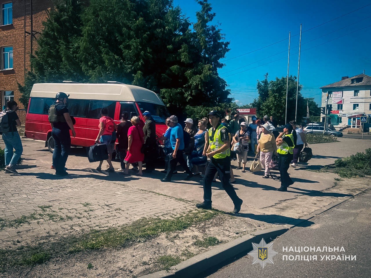 Сьогодні працівники поліції вкотре забезпечували безпечне переміщення людей під час евакуації з Білопілля, яке знаходиться у безпосередній близькості до кордону з рф.