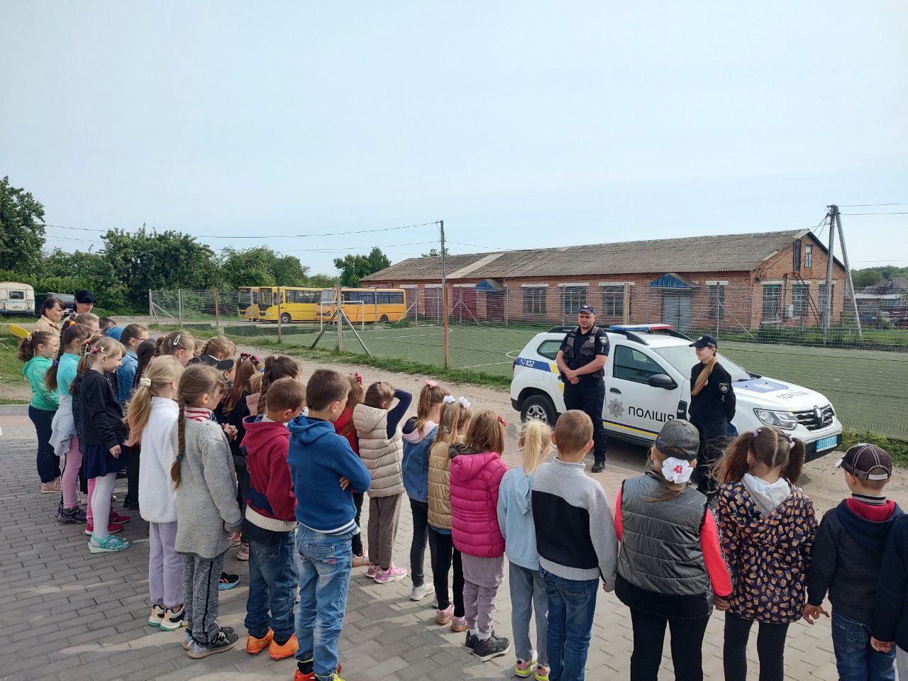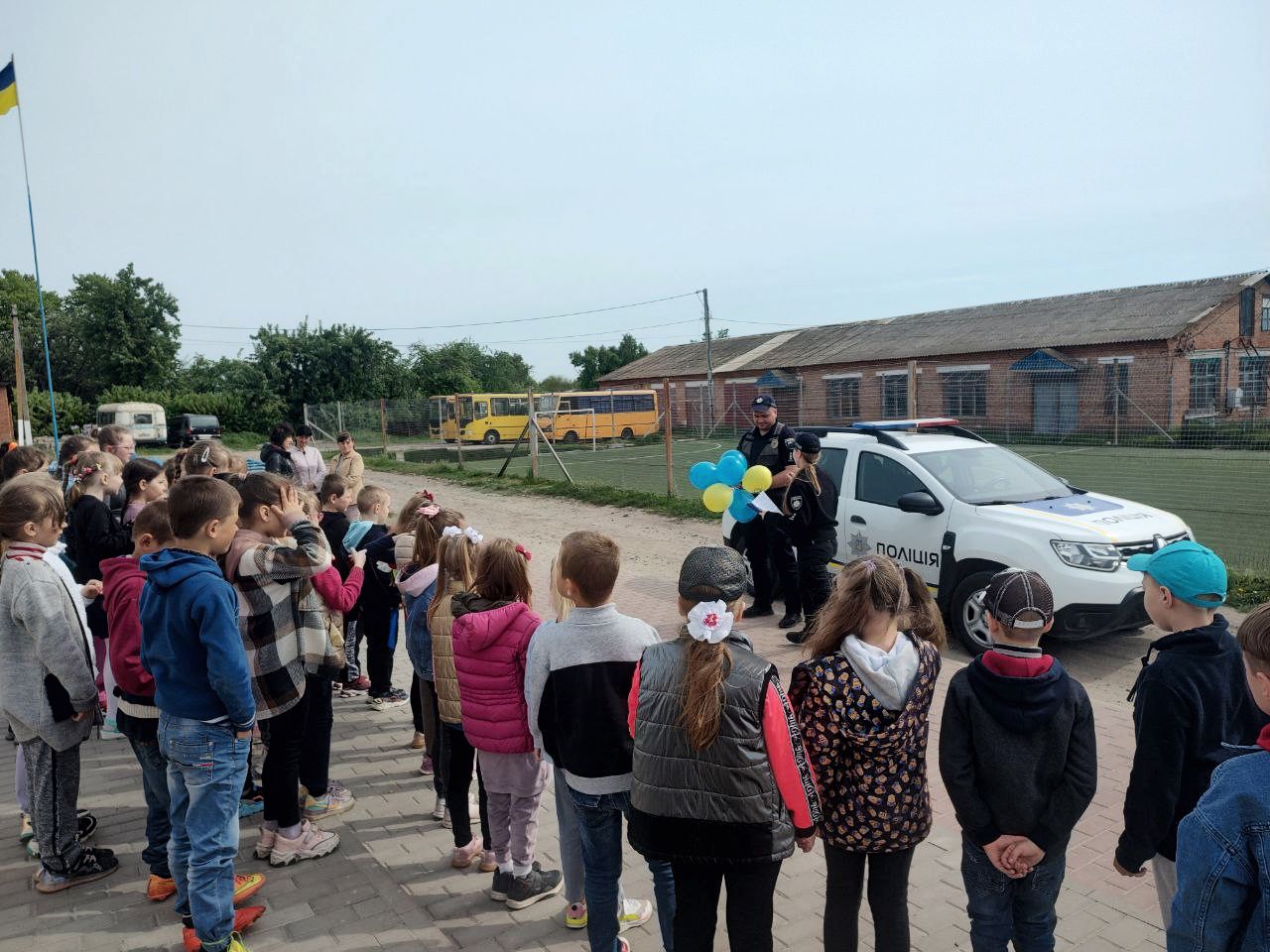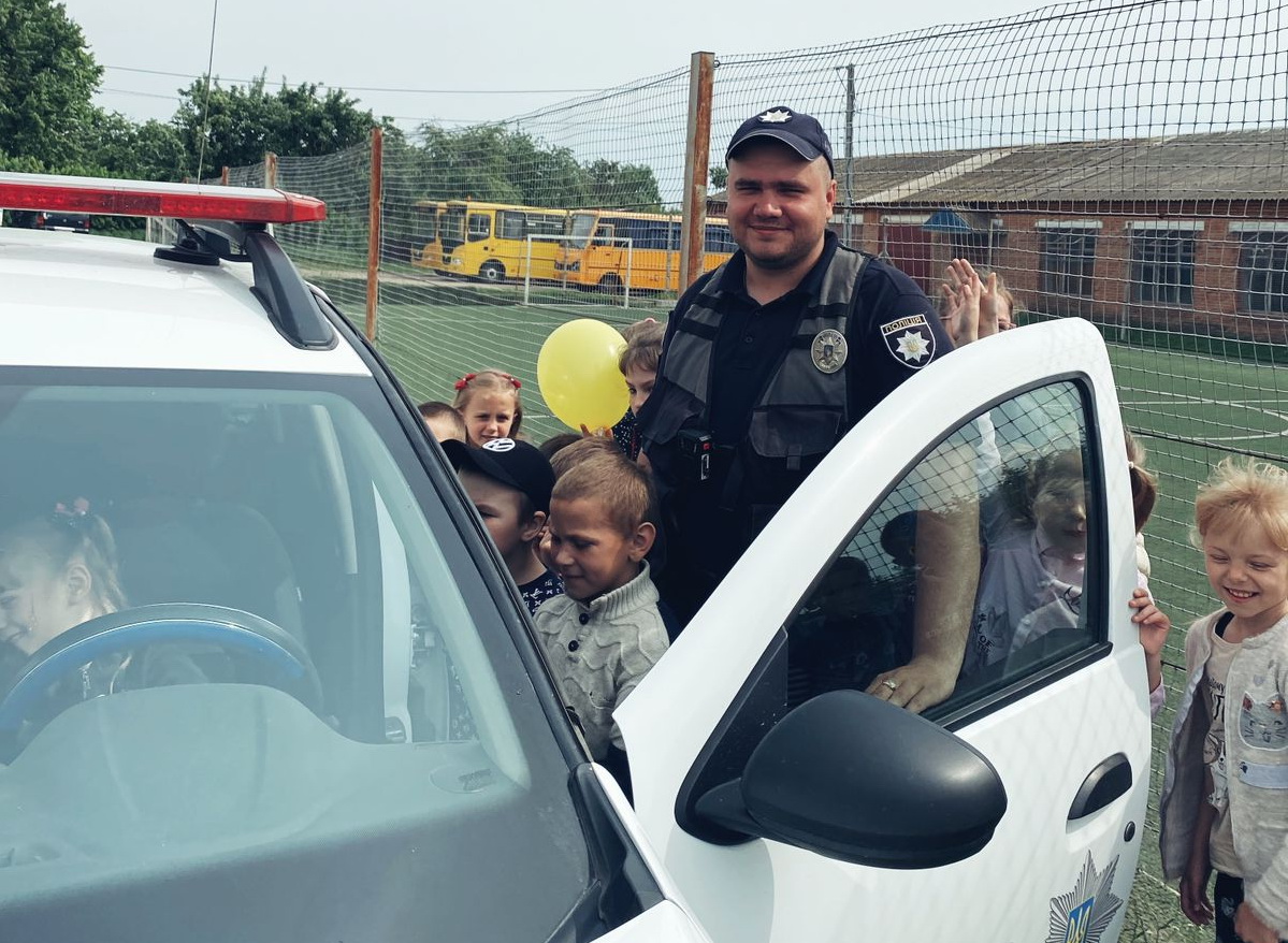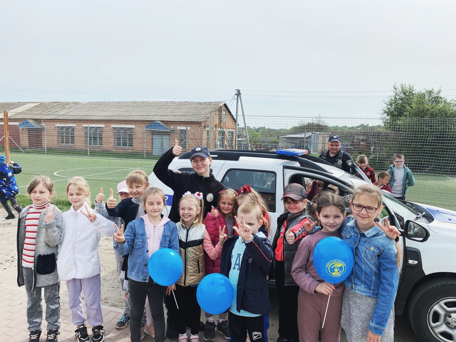 Під час зустрічі з дітьми правоохоронці розповіли про безпеку дорожнього руху, а потім провели пізнавальну вікторину на згадану тему. Найактивніші отримали від правохоронців повітряні кульки у патріотичних кольорах.