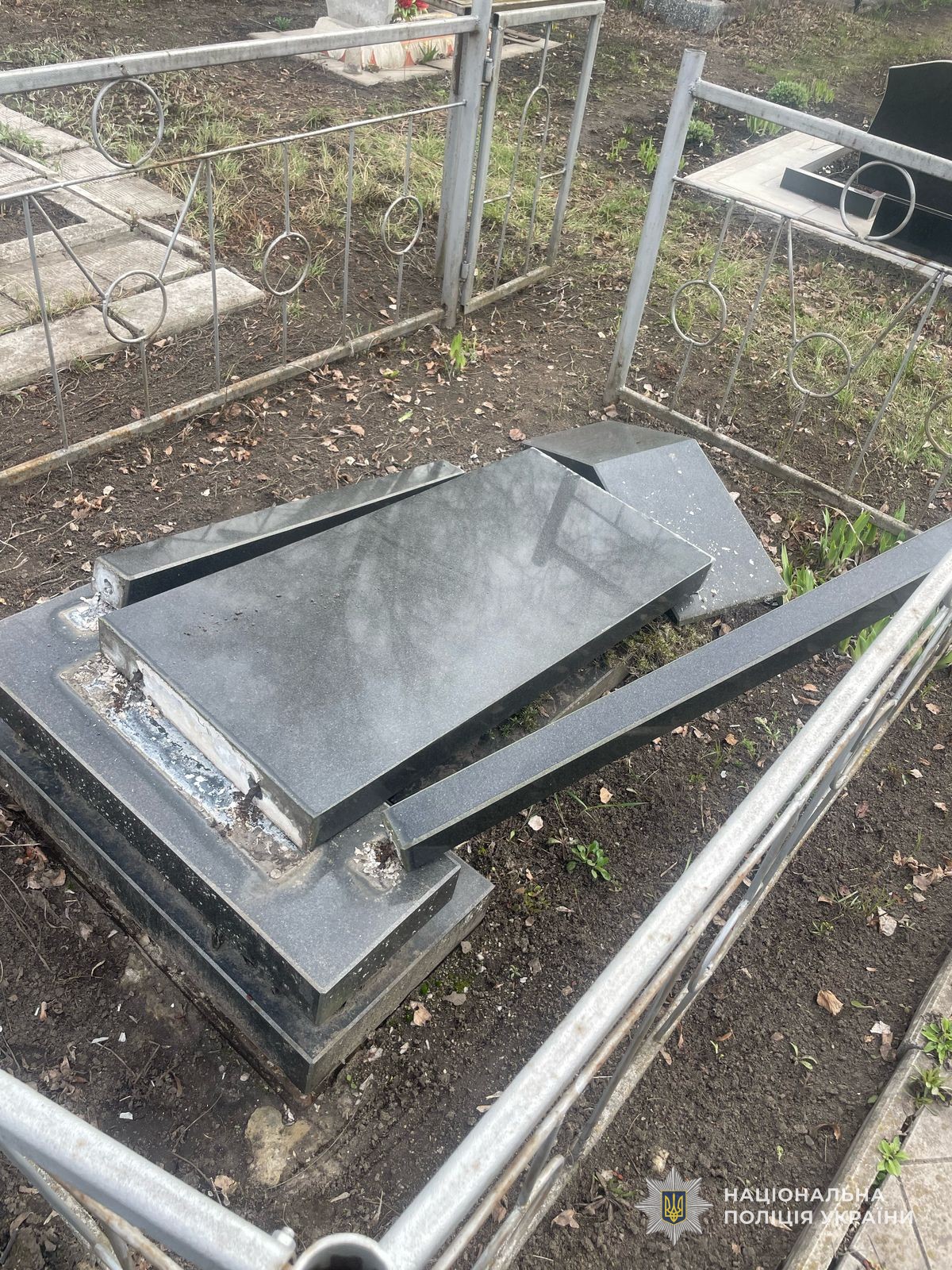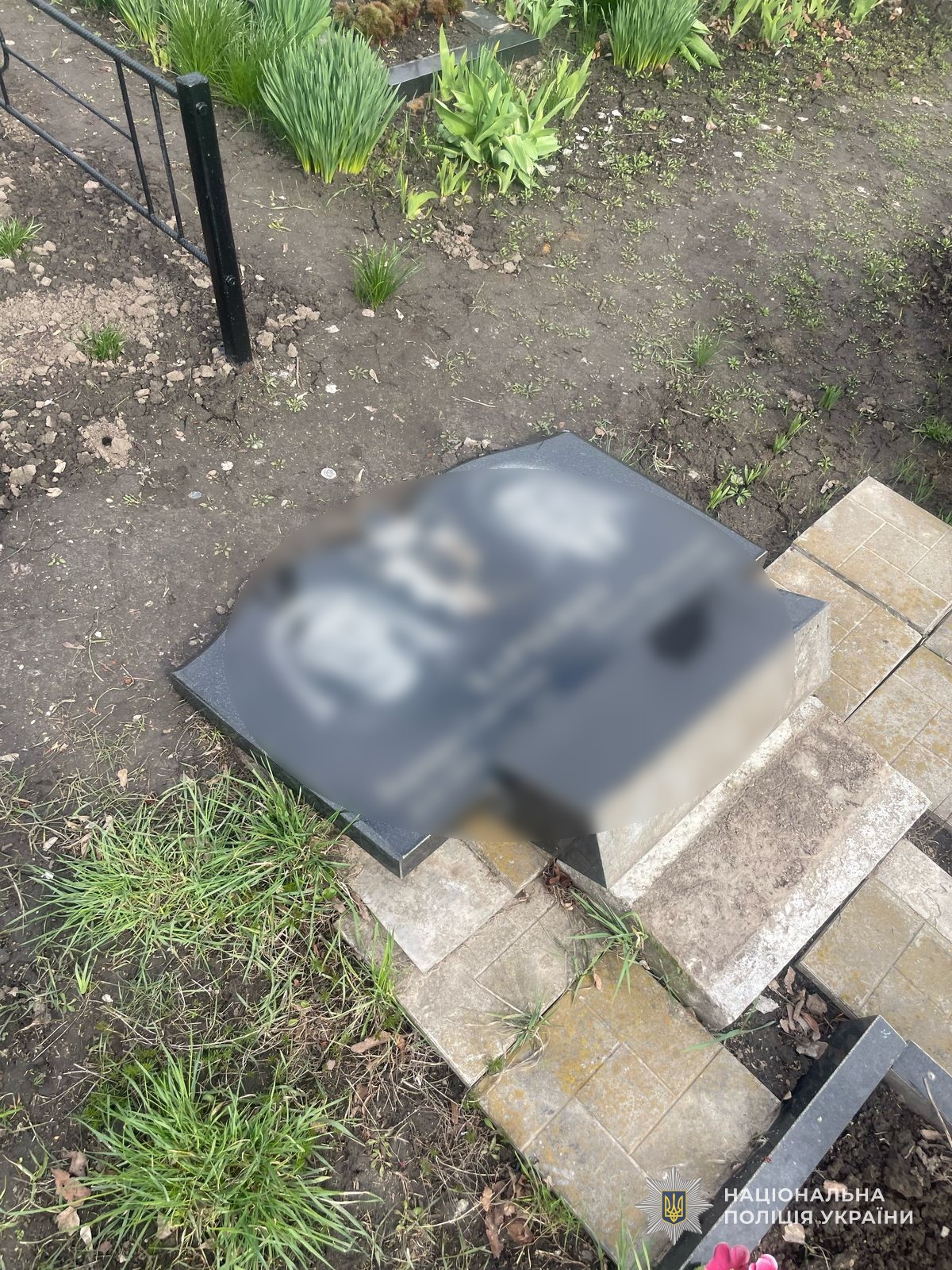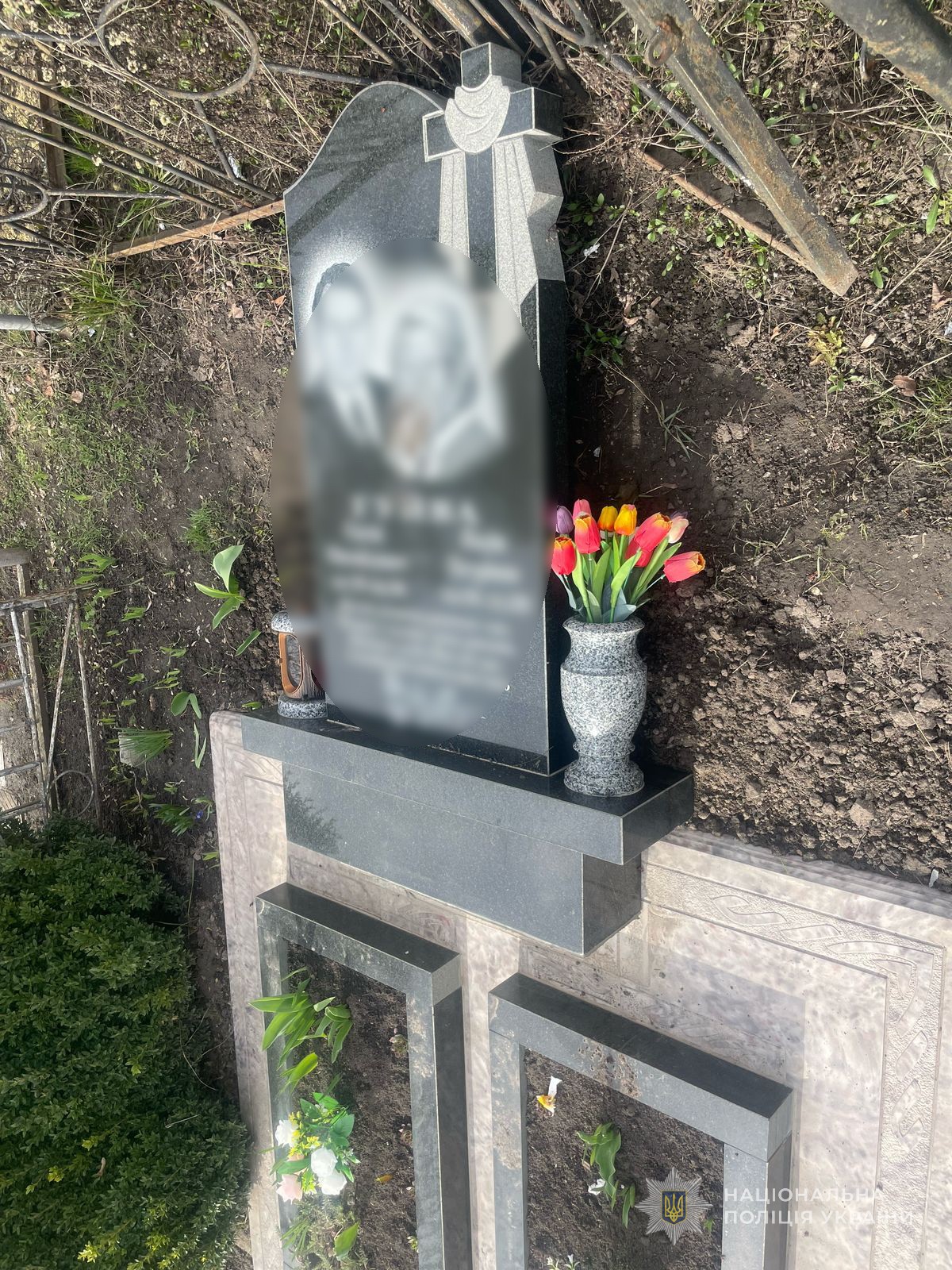 В рамках відкритого кримінального провадження за статтею 297 Кримінального кодексу України (наруга над могилою, іншим місцем поховання або над тілом померлого) поліцейські провели комплекс оперативно-розшукових заходів. Завдяки цьому вдалося встановити особу, причетну до злочину.