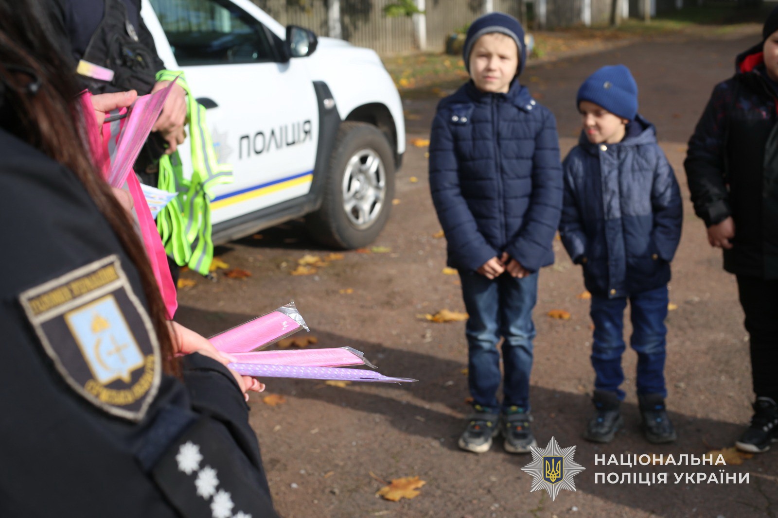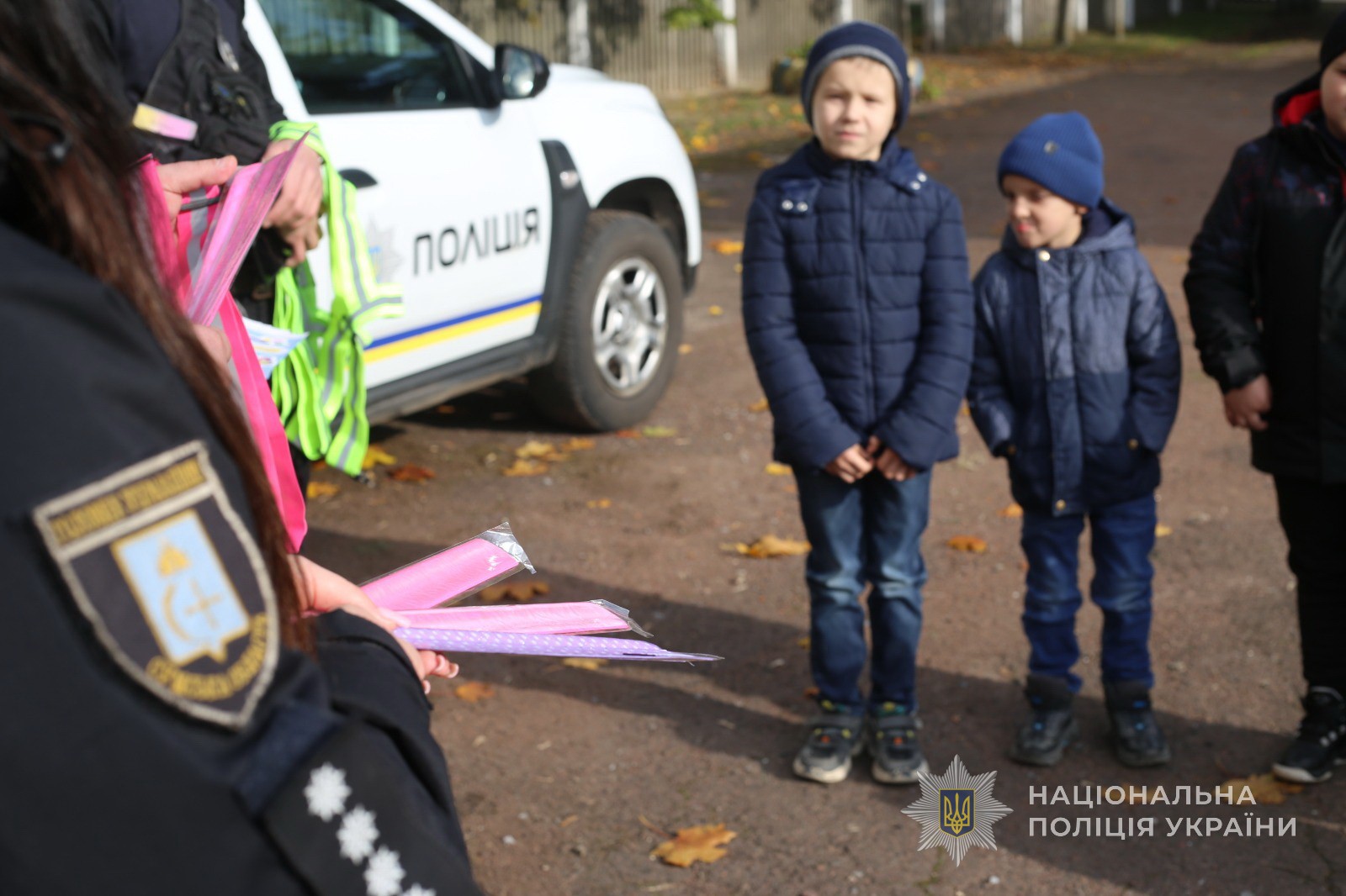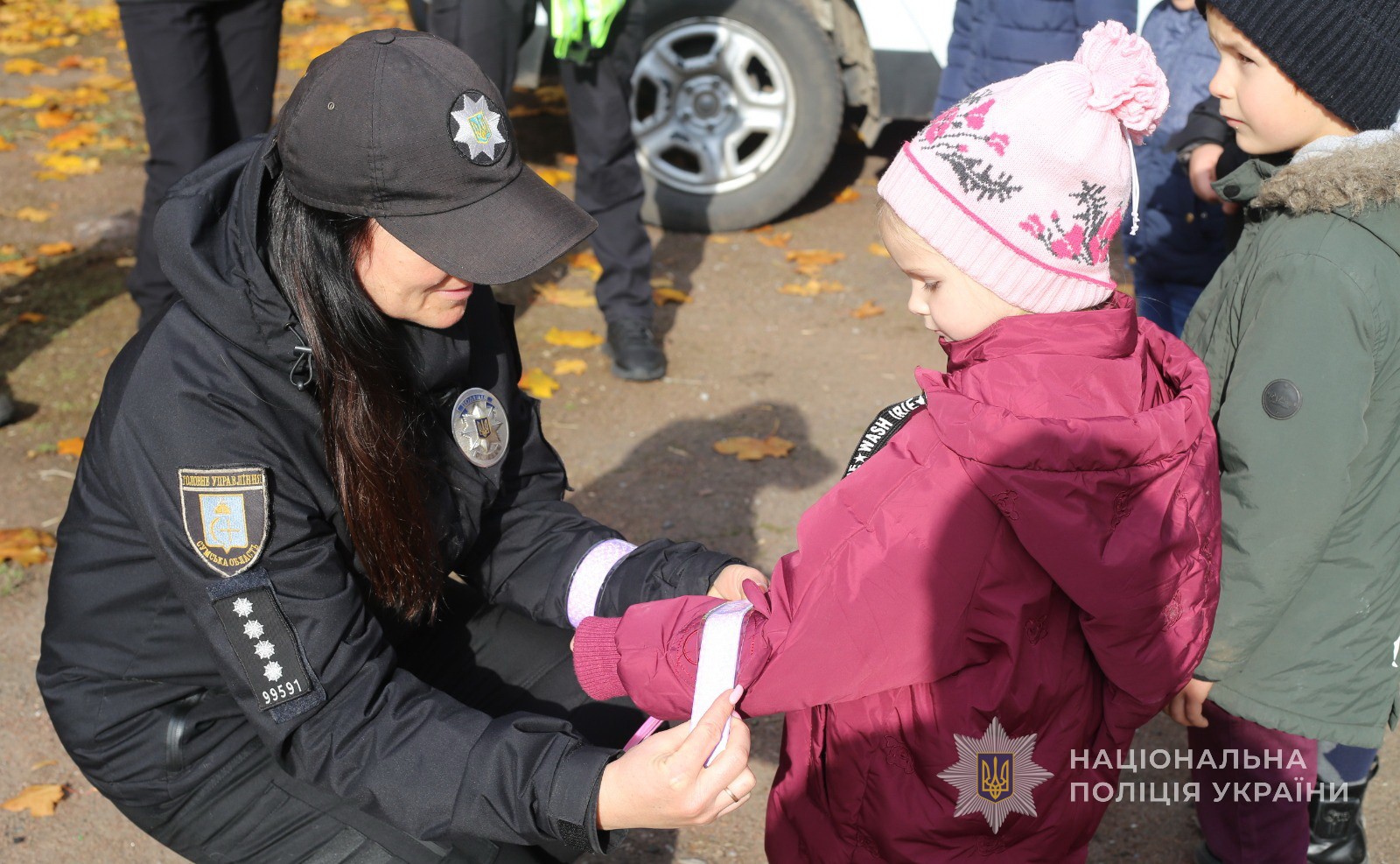 По завершенню заходу поліцейські ще раз роз'яснили хлопчикам та дівчаткам про основні правила поведінки під час руху до школи та додому, а також подарували їм спеціальні світлоповертальні стрічки.