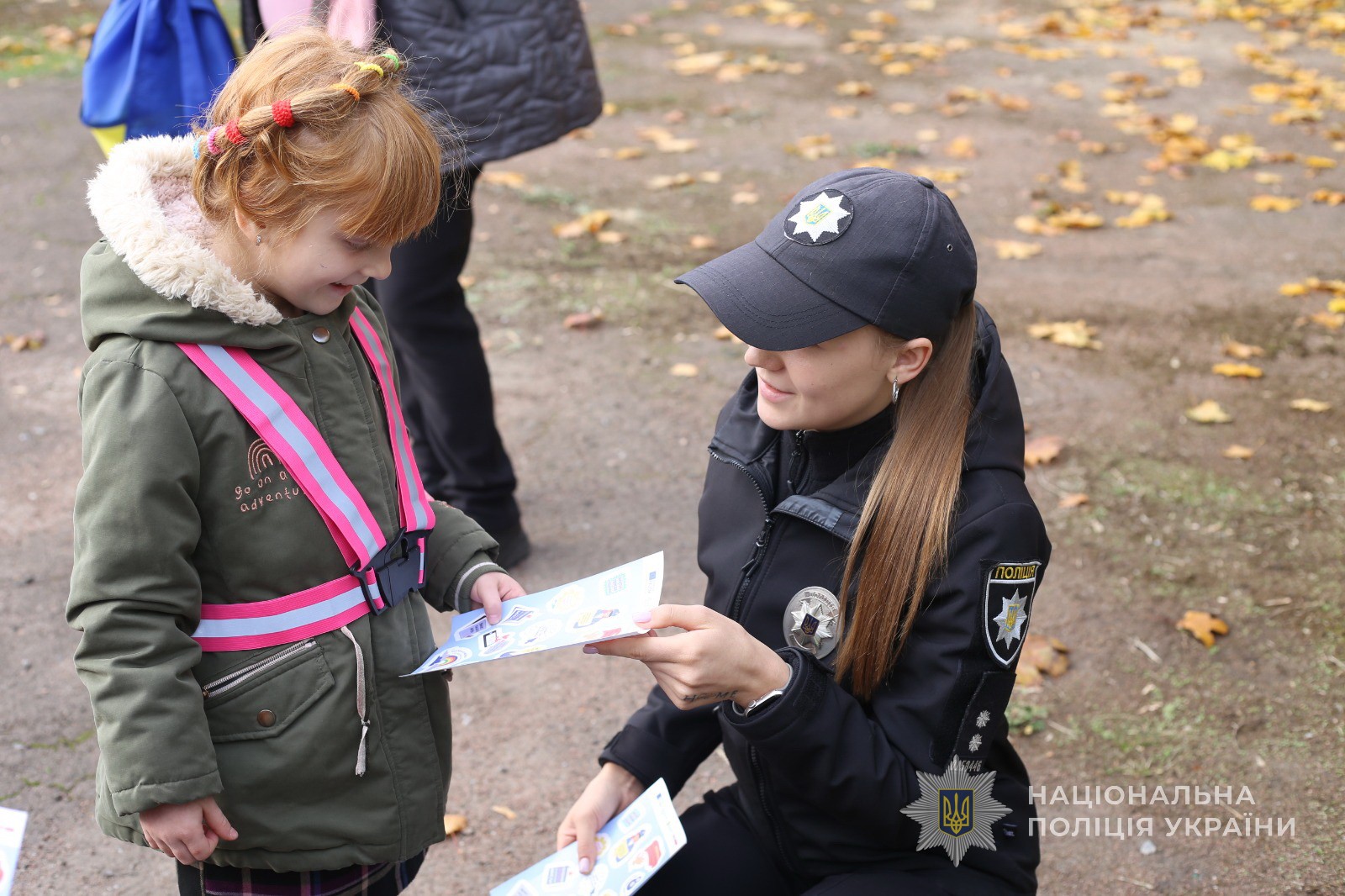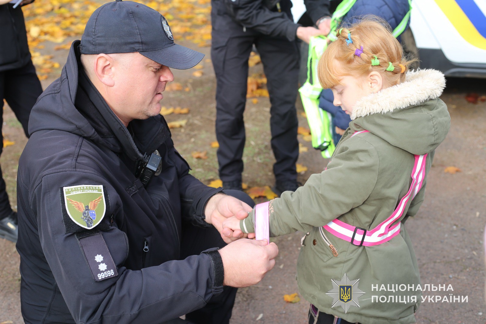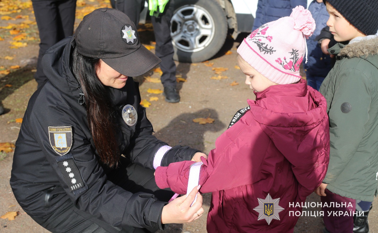 По завершенню заходу поліцейські ще раз роз'яснили хлопчикам та дівчаткам про основні правила поведінки під час руху до школи та додому, а також подарували їм спеціальні світлоповертальні стрічки.