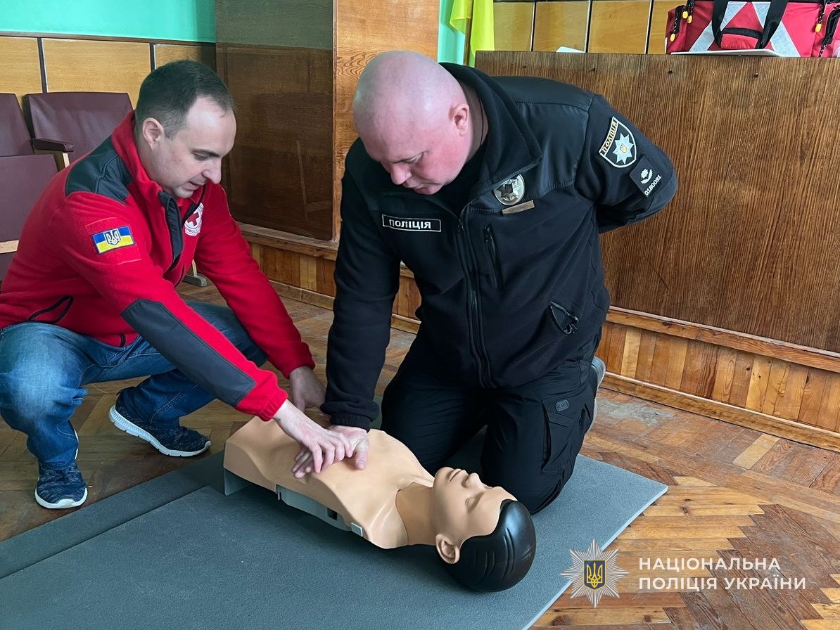 Під час тренінгу правоохоронці ознайомилися з алгоритмом надання першої допомоги при різних загрозливих для життя ситуацій, а також практично відпрацювали навички з використанням манекенів й необхідних матеріалів.