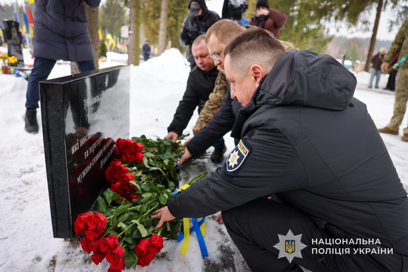 На Ново-Центральному Баранівському кладовищі відбулося покладання квітів до пам’ятного знаку. У церемонії взяв участь начальник ГУНП в Сумській області Олег Кашперук. Разом із присутніми він вшанував пам’ять загиблих захисників і мирних жителів хвилиною мовчання.