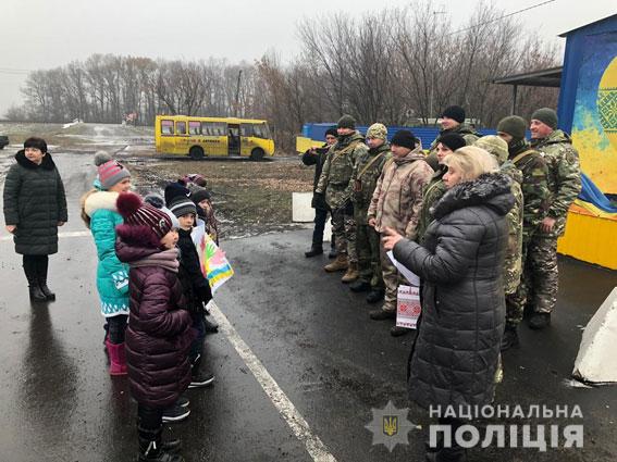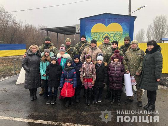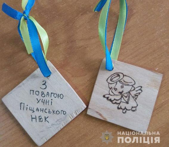 Діти подарували нашим полісменам власноручно зроблені сувеніри з янголятами – як символ того, що бійці, наче янголи-охоронці, стоять на варті мирного життя, захищають державу та її народ від зовнішньої загрози.