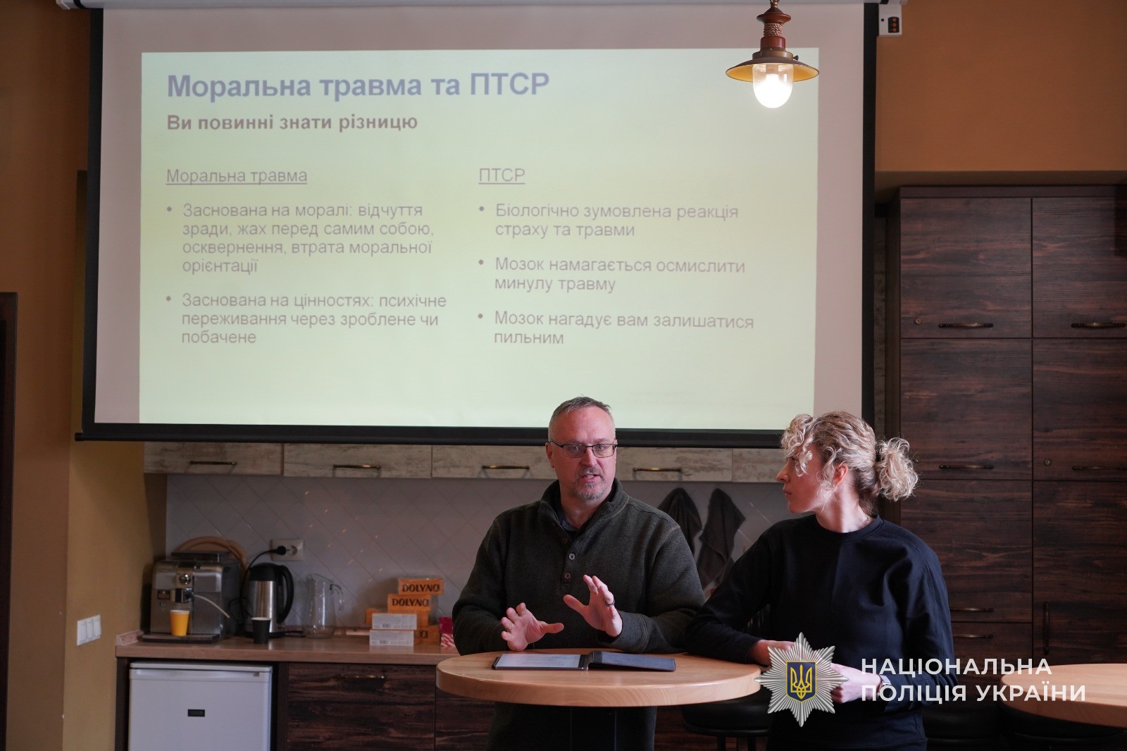 Зустріч проходила у формі тренінгу, з питань присвячених реабілітації та відновлення учасників бойових дій та ветеранів після повернення з полів боїв. На тренінгу були присутні представники підрозділів з дотримання прав людини, головної інспекції, ювенальної превенції, психологи, представники поліції, які безпосередньо брали участь у захисті України від російської агресії, підрозділу «Білих янголів», управління кадрового забезпечення та Управління патрульної поліції.