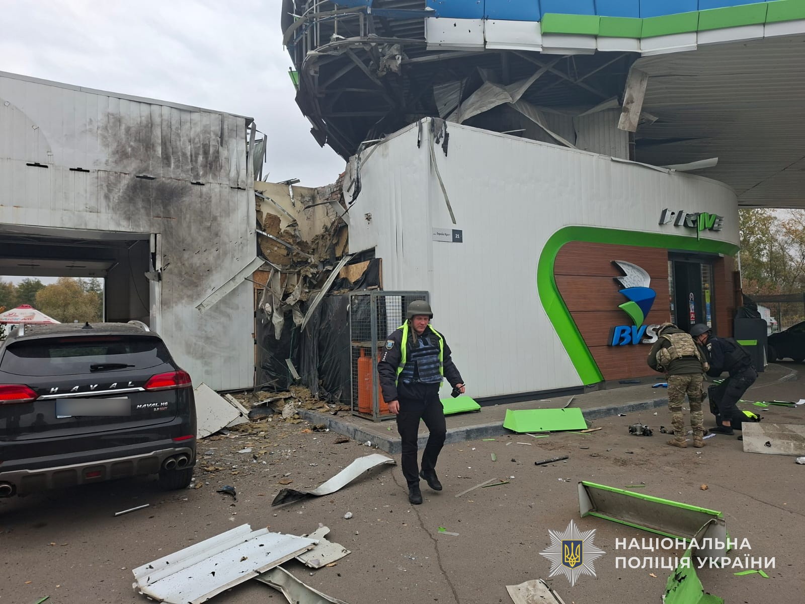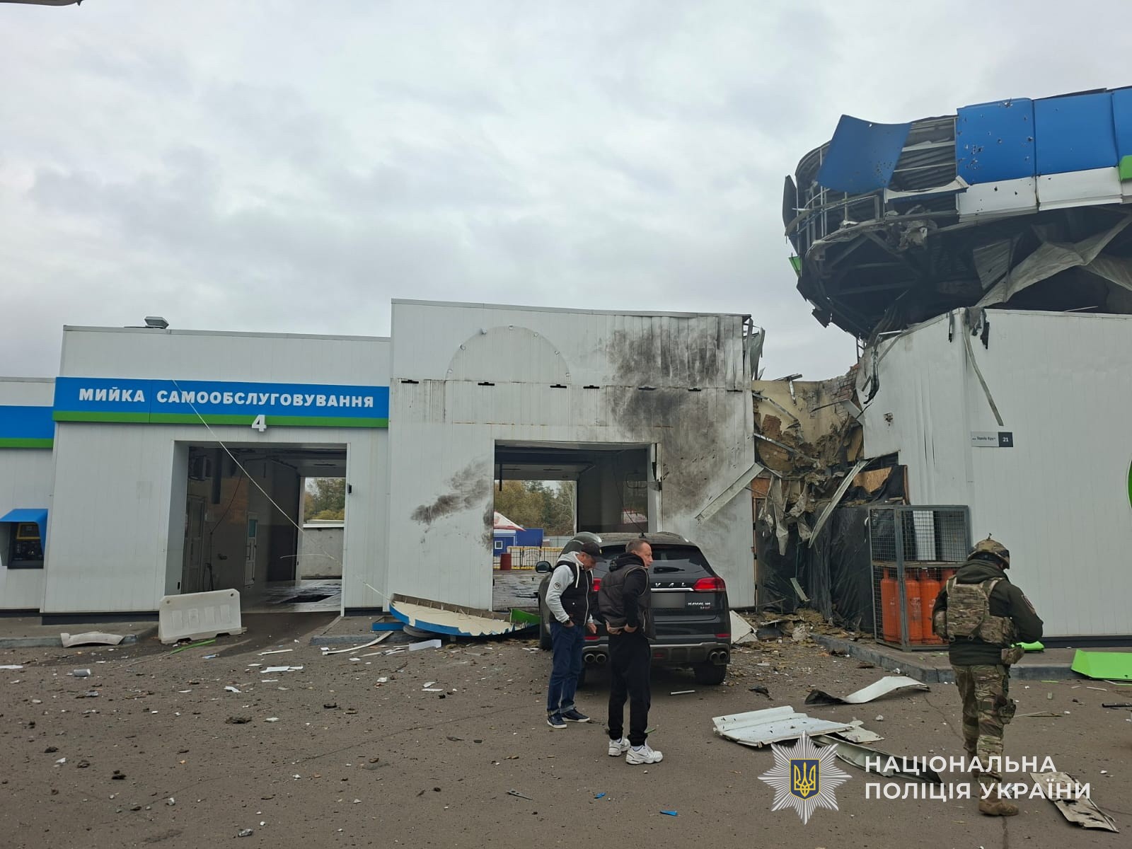На цей час відомо про двох потерпілих. За медичною допомогою звернулися жінки 51 та 53 років. Внаслідок обстрілу пошкоджено покрівлю маркету та обладнання на території АЗС, а також цивільний автомобіль.
