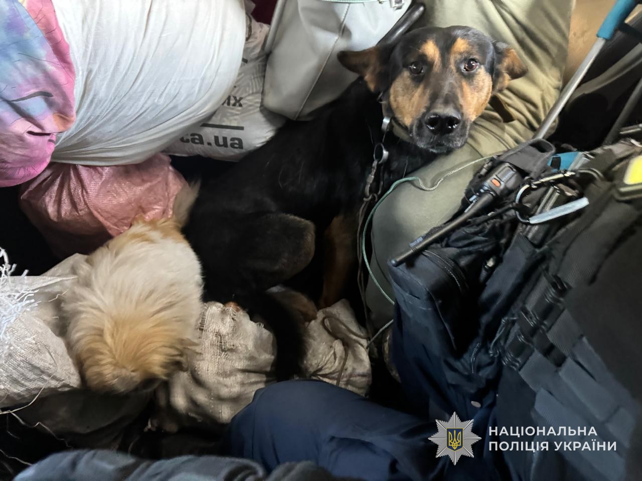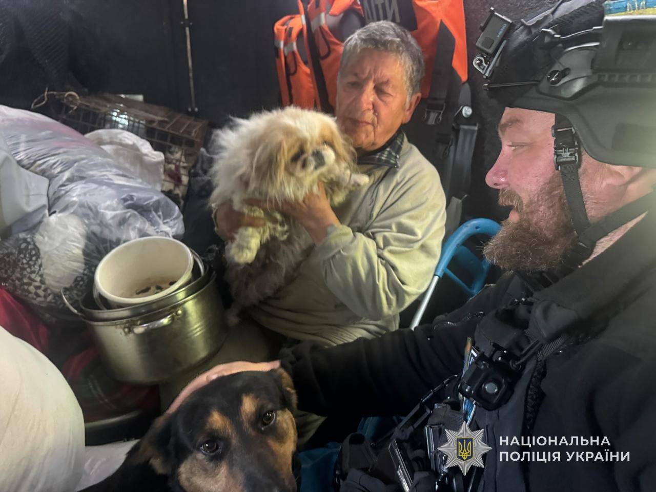 Жінка наполягала, що поїде тільки з усіма своїми тваринами. Поліцейські поставилися з розумінням, допомогли спакувати речі, обережно перенесли собак та курей. Вивезли всіх у більш безпечне місце — подалі від небезпеки.