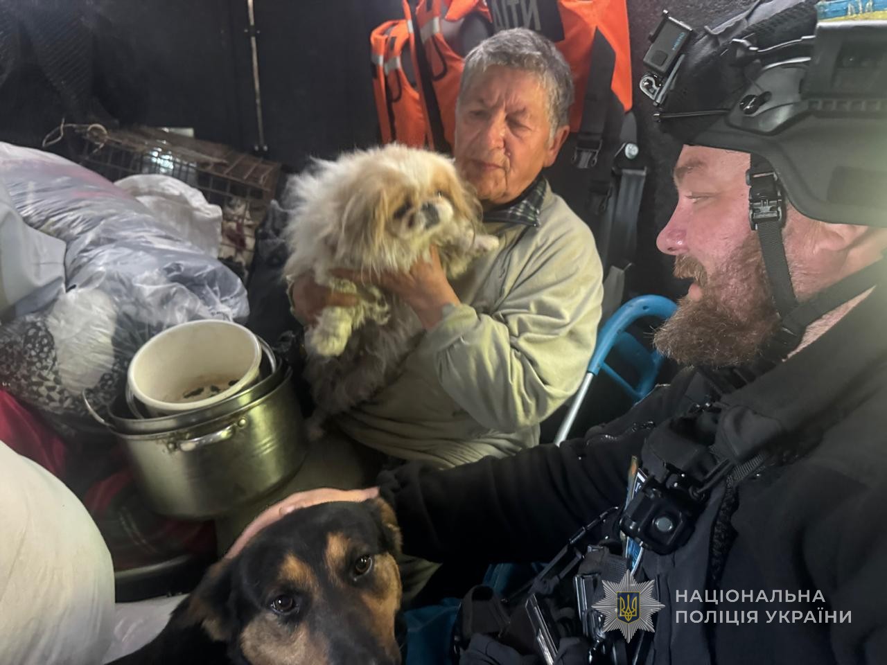 На допомогу приїхали поліцейські з підрозділу «Білі янголи». Разом із 74-річною жінкою евакуювали й її трьох собак та понад 30 курей. Для правоохоронців такі евакуації — не рідкість, але кожна історія має свої особливості.