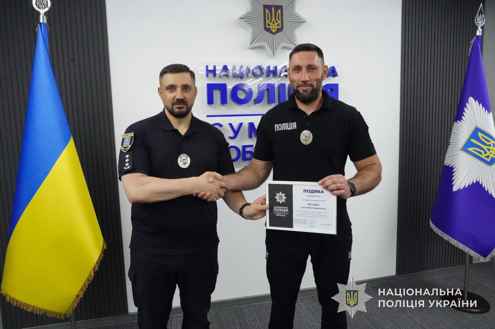 З нагоди 29-ї річниці з Дня вибухотехнічної служби та за успішне й сумлінне виконання службового обов’язку, відданість Присязі, високий професіоналізм, вагомий особистий внесок у справу забезпечення охорони прав і свобод людини, протидії злочинності, підтримання публічної безпеки і порядку, забезпечення ефективного виконання завдань і функцій поліції начальник ГУНП вручив подяки поліцейським-вибухотехнікам та побажав професійної вдачі, міцності духу та сил у такій ризикованій роботі.
