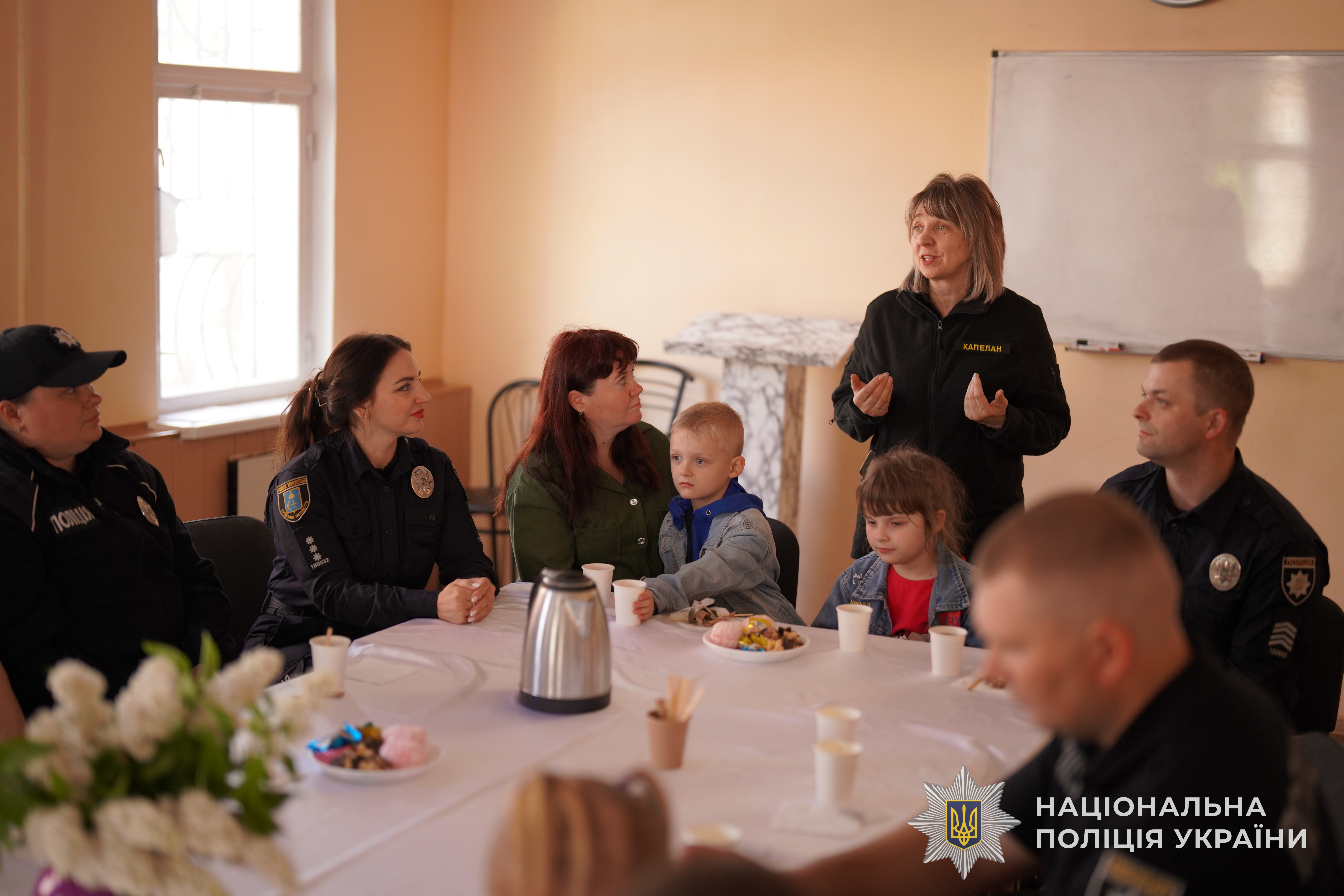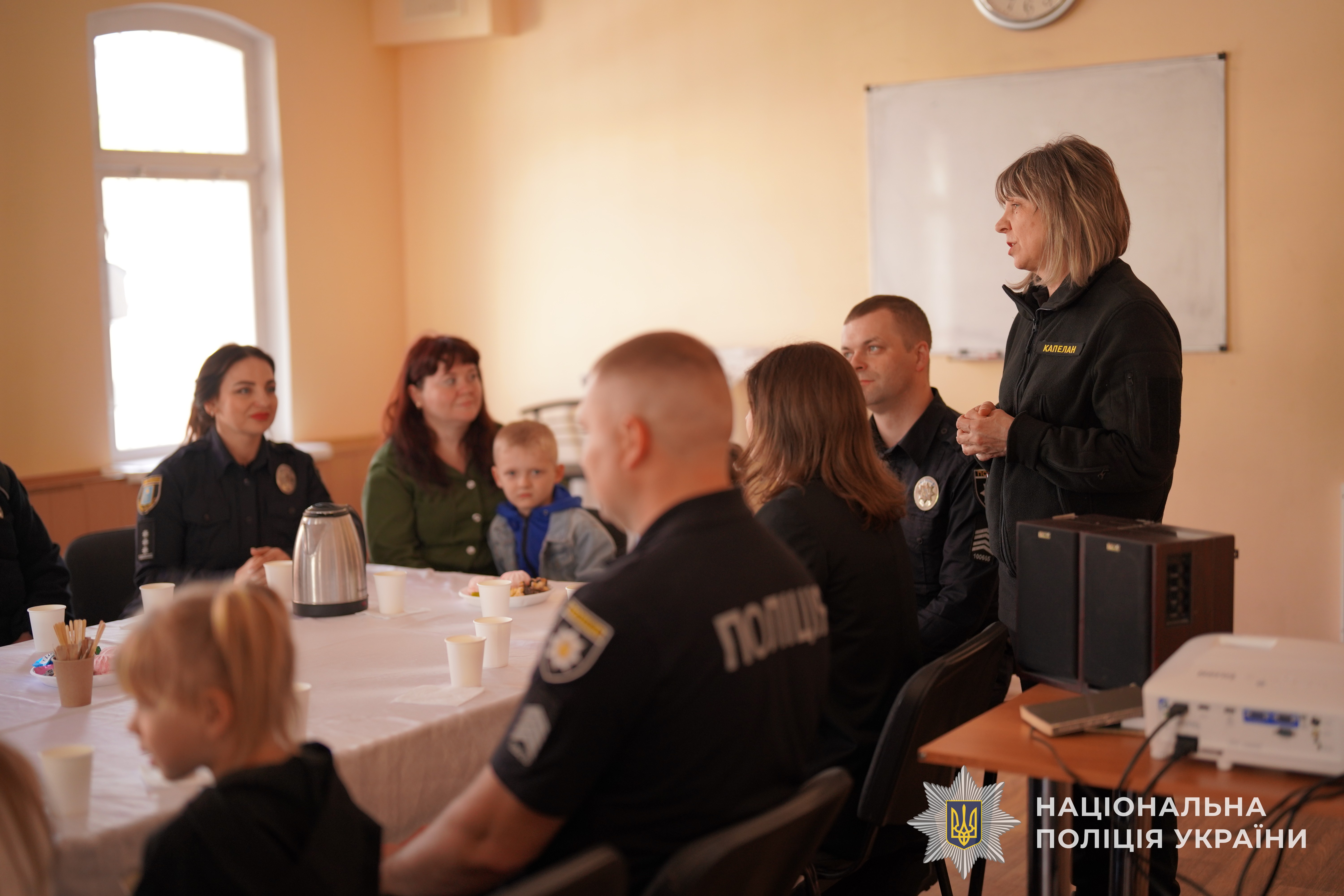 Для підтримки родин поліцейських, які тимчасово переміщені з прикордонних населених пунктів, відбулася зустріч з капеланами поліції. Захід було організовано представниками відділу організації соціальної роботи управління кадрового забезпечення ГУНП в Сумській області.