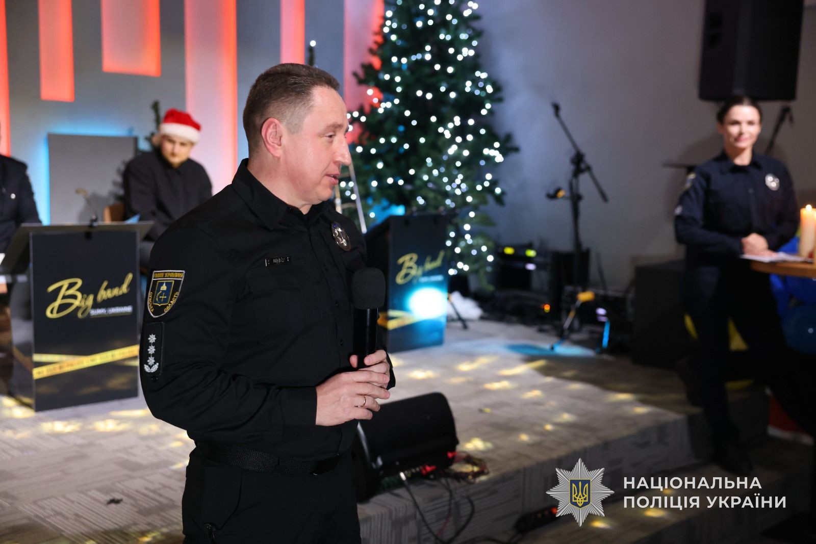 Поруч із родинами був і Капеланський патруль, додаючи духовного затишку і сердечності. Дійство відбулося в приміщенні церкви «Добра новина», де стіни наповнилися світлом Різдва, дитячими усмішками та сміхом. Особливого настрою додав виступ поліцейського оркестру, який виконав святкові композиції.