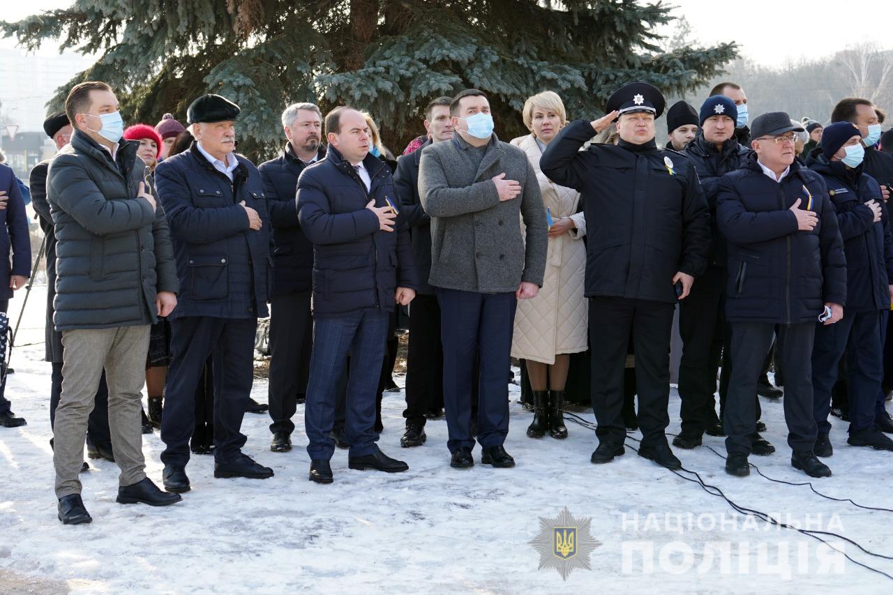 Під час урочистостей було піднято Державний прапор України, а після цього усі присутні виконали Державний Гімн України.