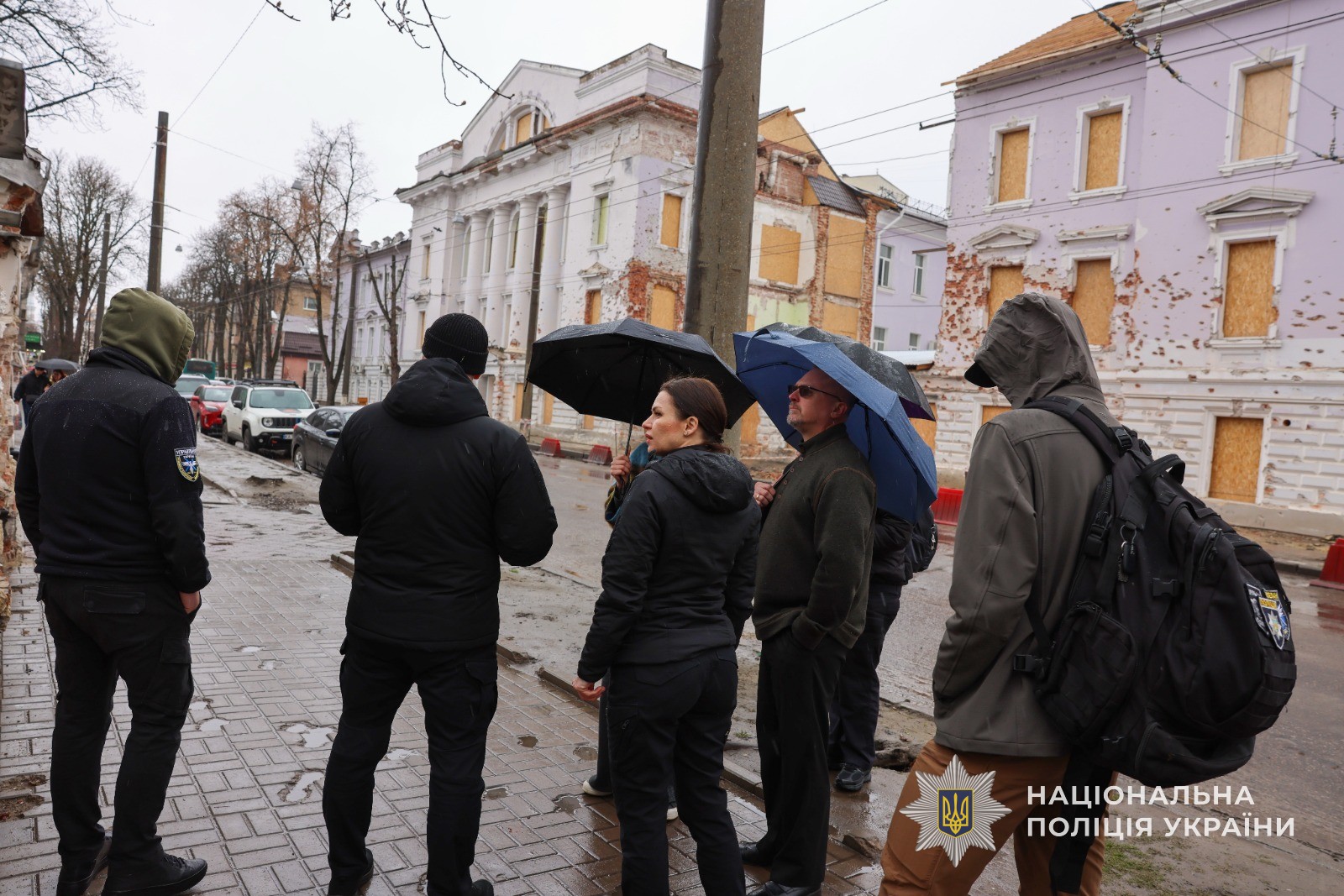 Також поліцейські разом з капеланами Сумщини провели гостя на місця російських прильотів де він на власні очі побачив масштаби руйнувань і цинізм ударів по цивільній інфраструктурі.