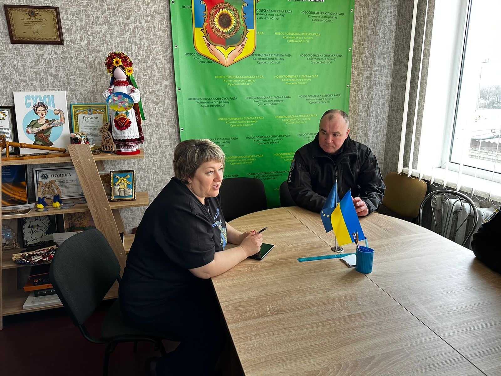 Під час робочого відрядження Максим Калатур провів зустрічі з керівництвом й мешканцями Новослобідської, Путивльської територіальних громад, а також представниками місцевої поліції. На порядок денний були винесені питання щодо настрою місцевого населення, яке постійно потерпає від обстрілів, а також заходів, що вживаються органами місцевої влади для забезпечення життєдіяльності громадян (ремонт будинків, відновлення електро/водопостачання, забезпечення соціально-побутових умов). Не залишилося поза увагою й питання забезпечення безпеки цивільного населення.