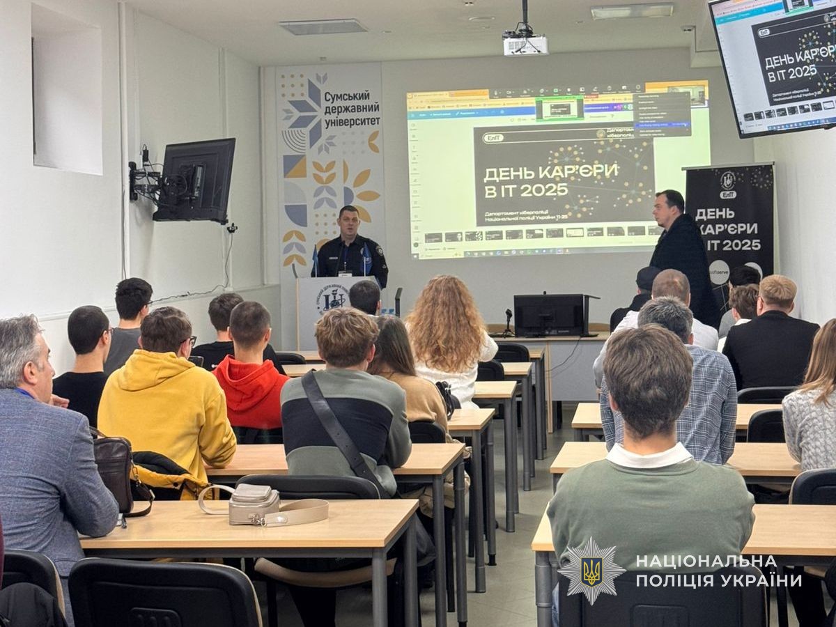 Днями факультет ЕлІТ Сумського державного університету провів традиційний захід «День кар’єри в ІТ 2025». Серед запрошених були й співробітники Управління протидії кіберзлочинам в Сумській області Департаменту кіберполіції Національної поліції України.
