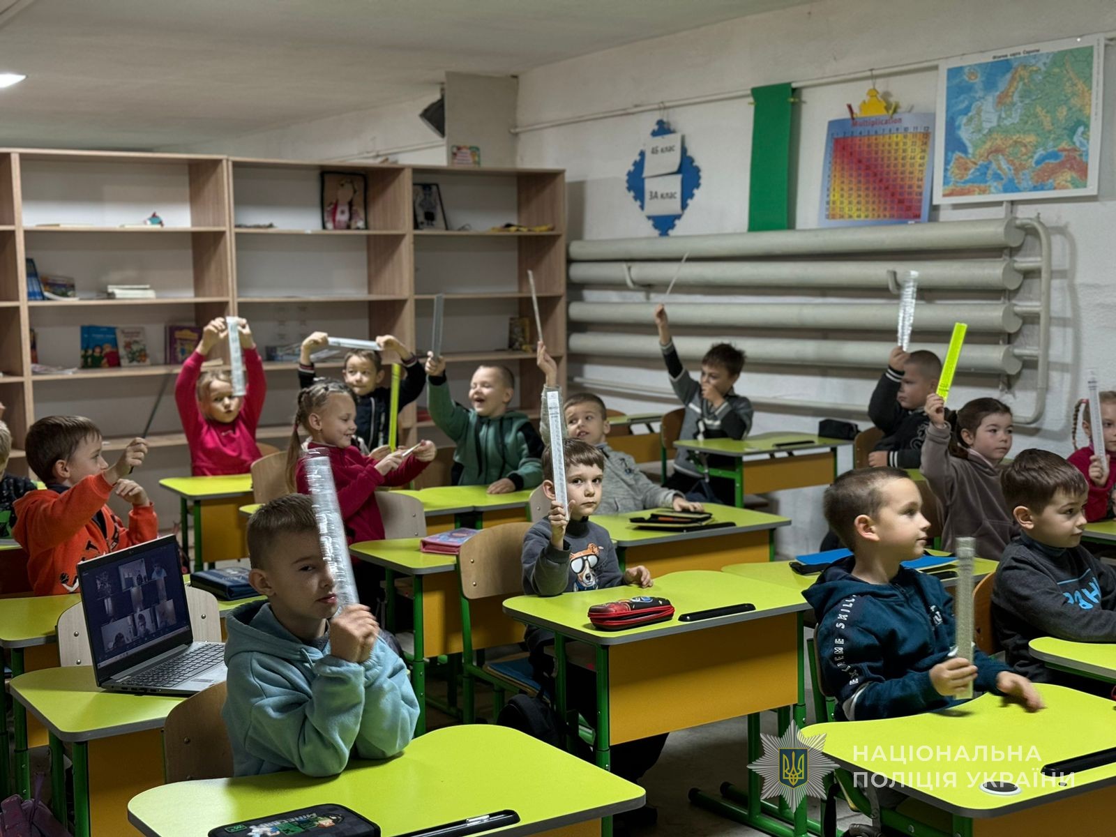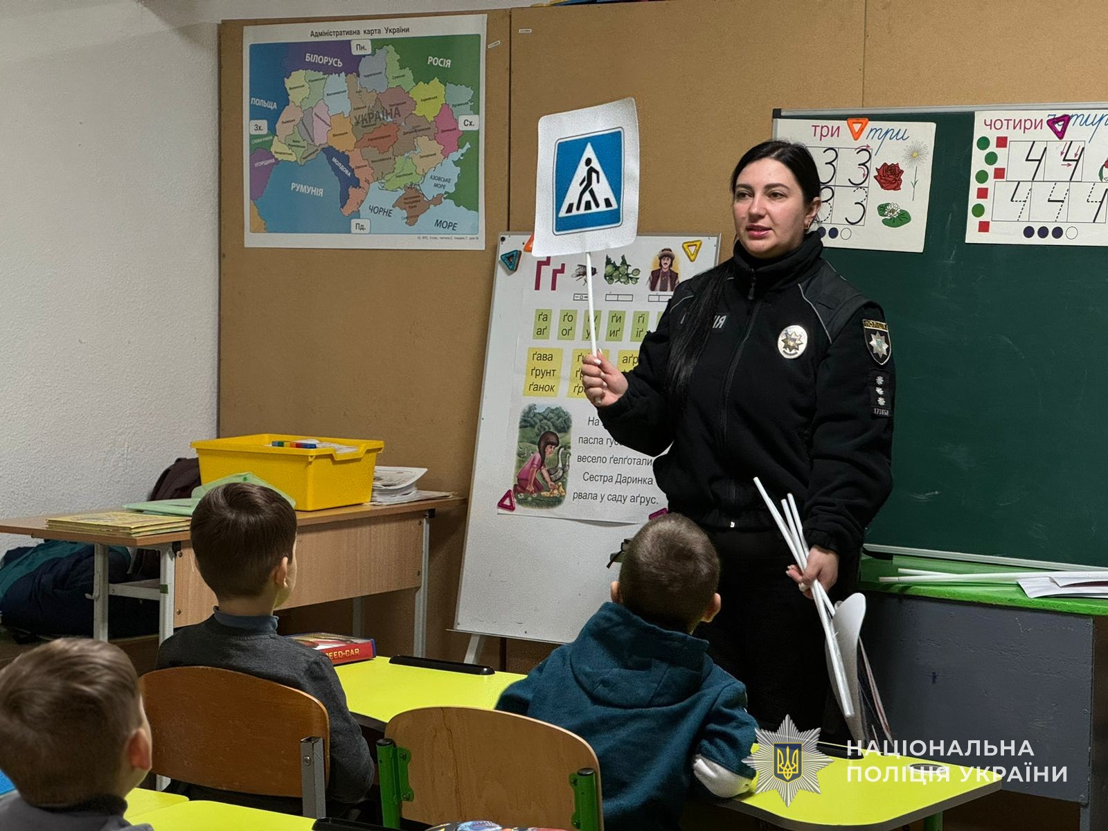 Офіцер служби освітньої безпеки зустрілась з першокласниками, аби нагадати та навчити основним правилам дорожньої руху.