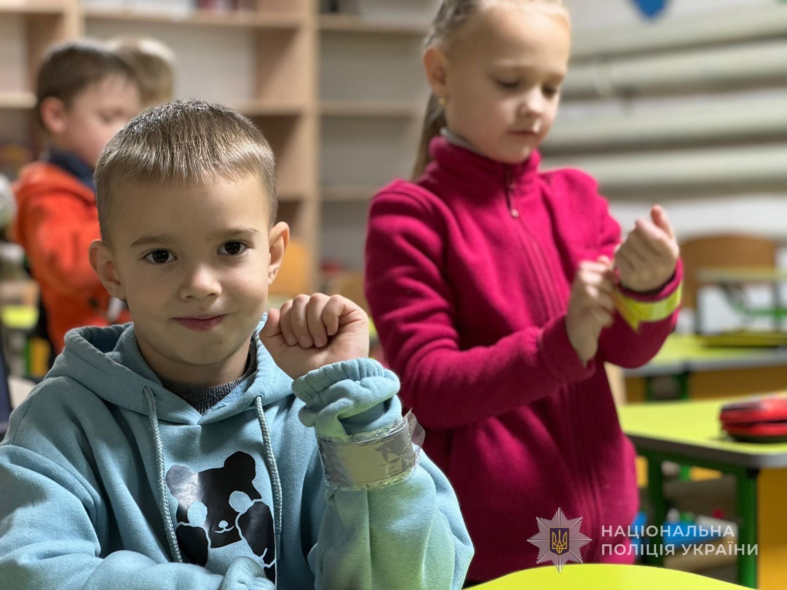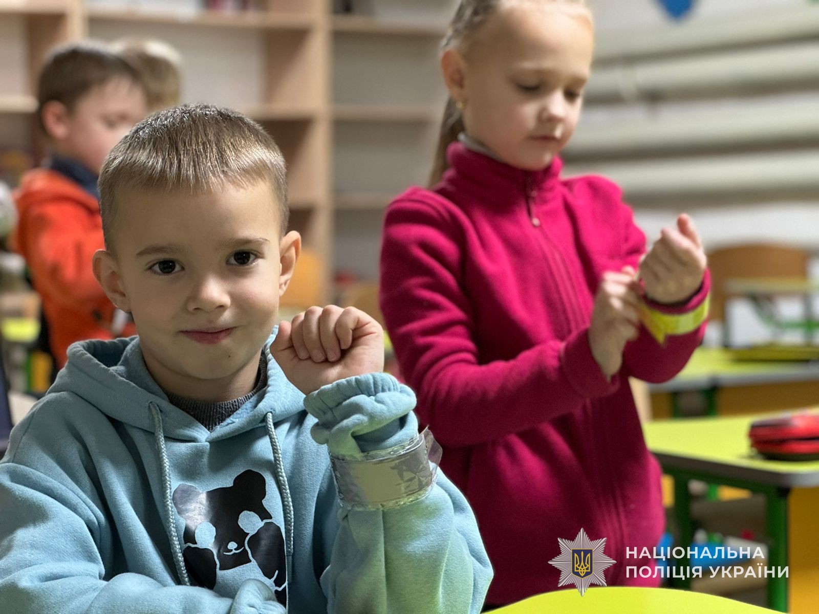 Також офіцерка зазначила про необхідність використання світловідбиваючих елементів на одязі, адже це зробить пішохода більш помітними для інших учасників дорожнього руху. Після перевірки засвоєних знань, всі діти отримали подарунки від поліцейської – світловідбиваючі флікери.