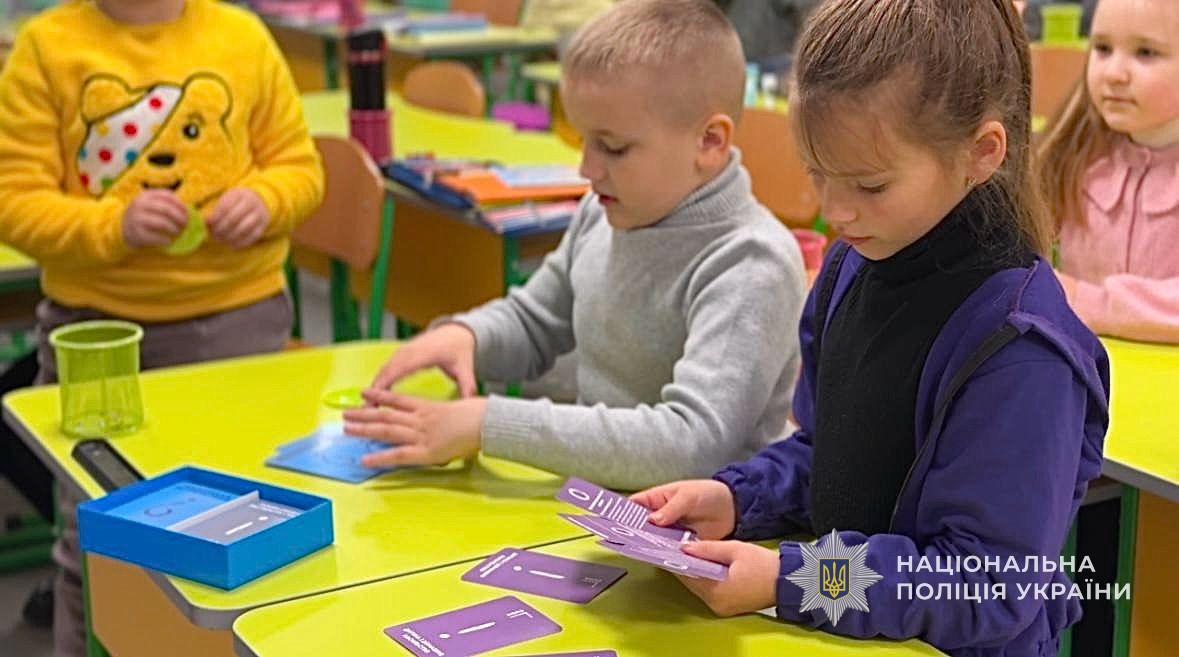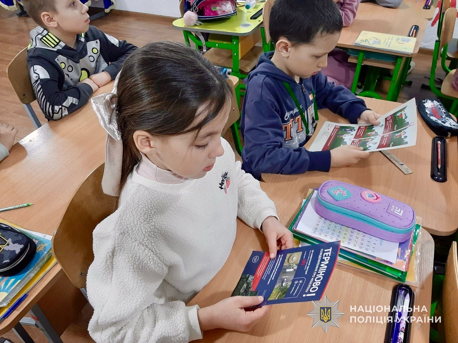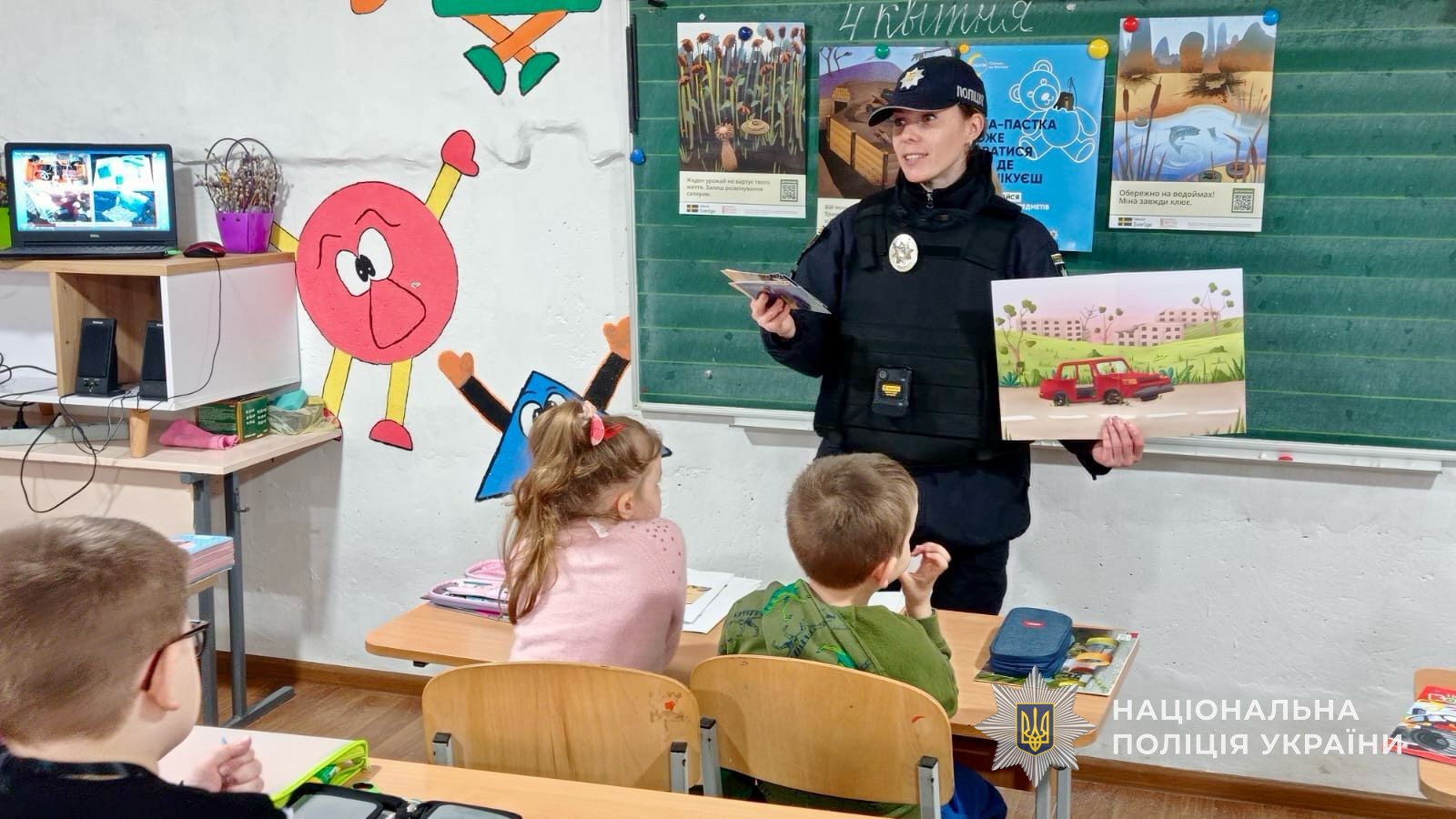 Поліцейські у простій формі розповіли учням про те, як виглядають різні типи вибухонебезпечних предметів, зокрема міни, гранати, снаряди та інші боєприпаси, що можуть залишатися після бойових дій. Інспектори ознайомили дітей з ознаками, за якими можна розпізнати потенційно небезпечну територію – наявність застережних знаків, пошкодженої техніки або ж підозрілих предметів, нехарактерних для місцевості.