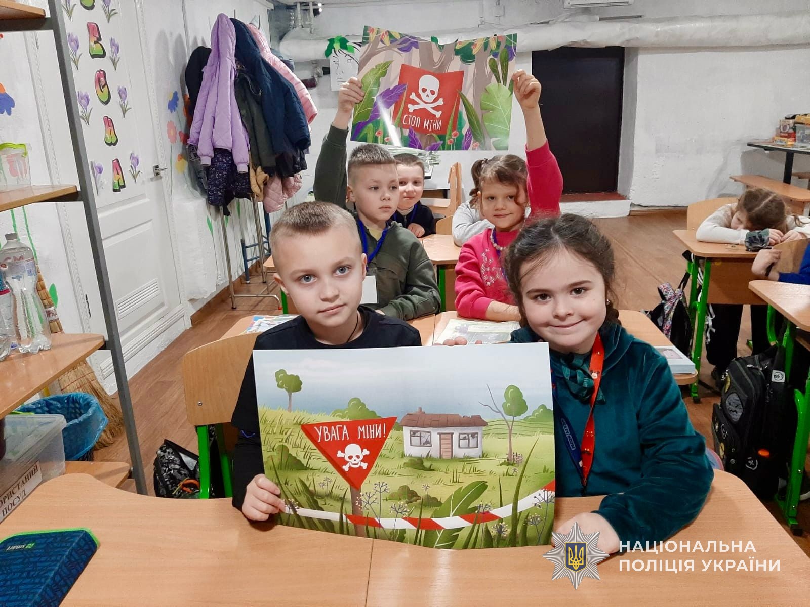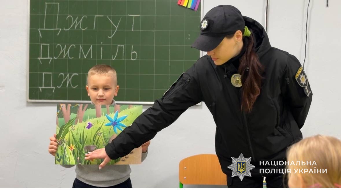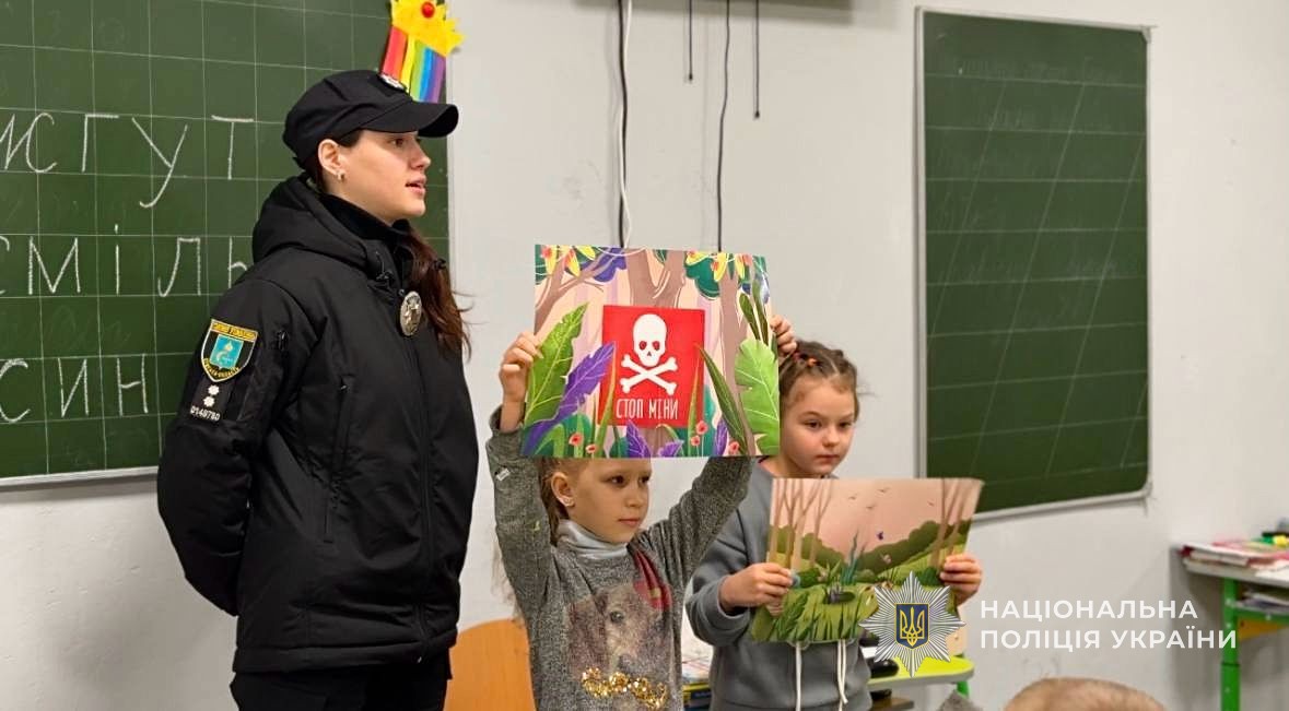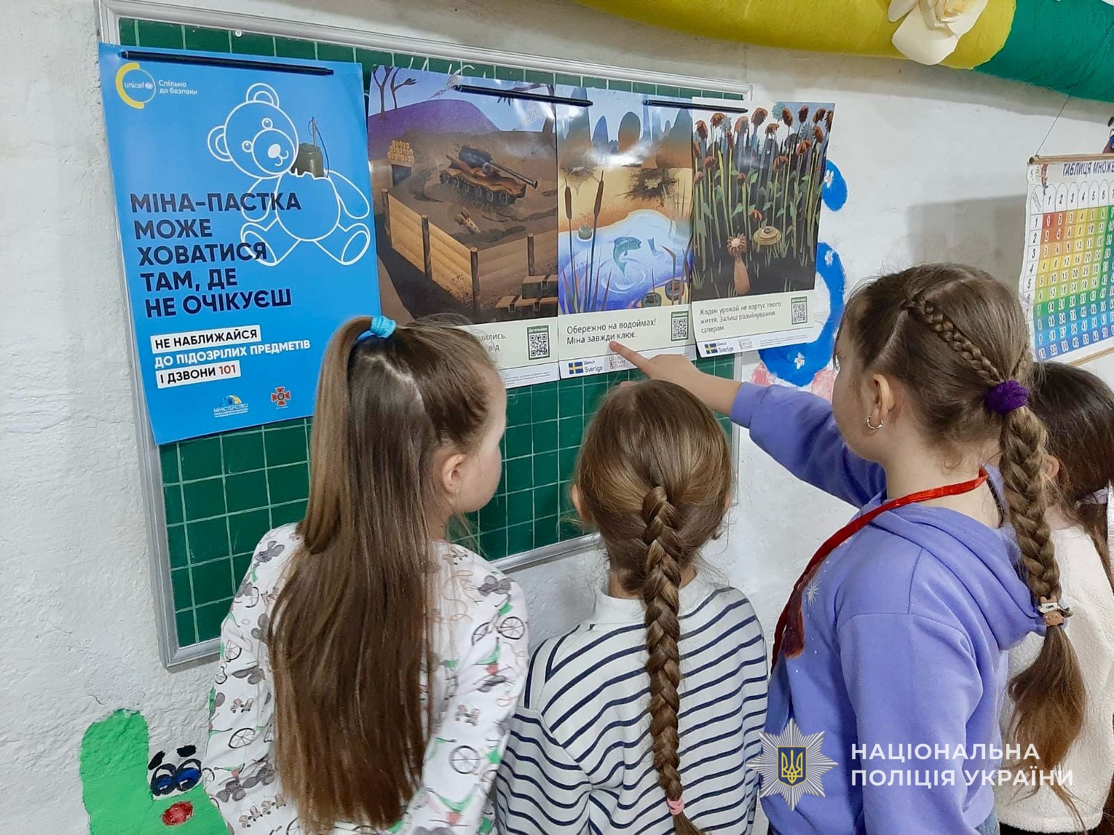 Поліцейські у простій формі розповіли учням про те, як виглядають різні типи вибухонебезпечних предметів, зокрема міни, гранати, снаряди та інші боєприпаси, що можуть залишатися після бойових дій. Інспектори ознайомили дітей з ознаками, за якими можна розпізнати потенційно небезпечну територію – наявність застережних знаків, пошкодженої техніки або ж підозрілих предметів, нехарактерних для місцевості.