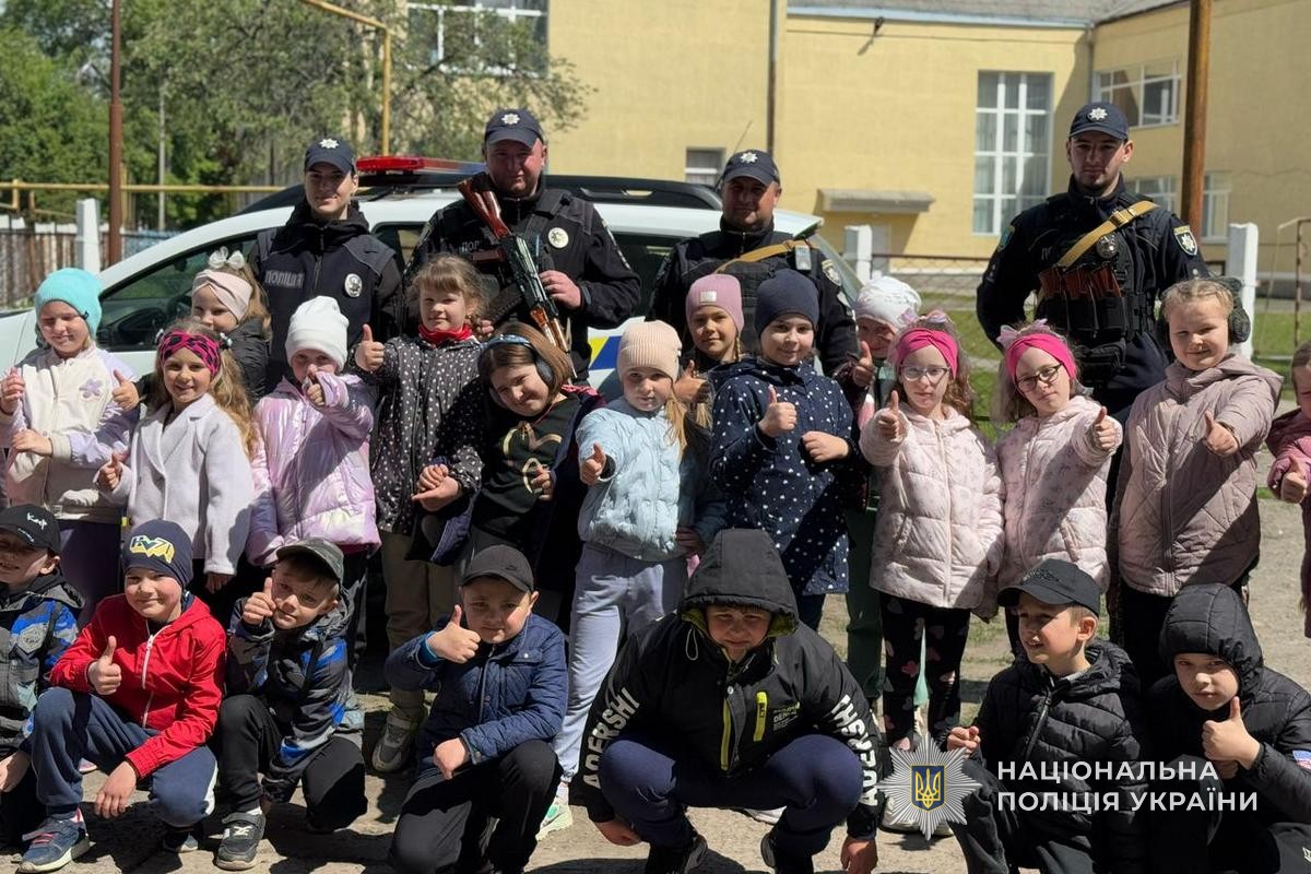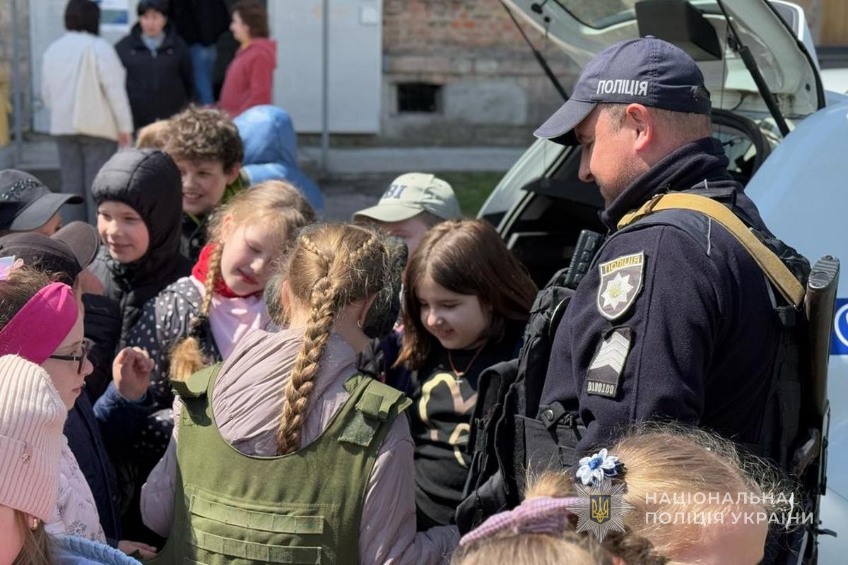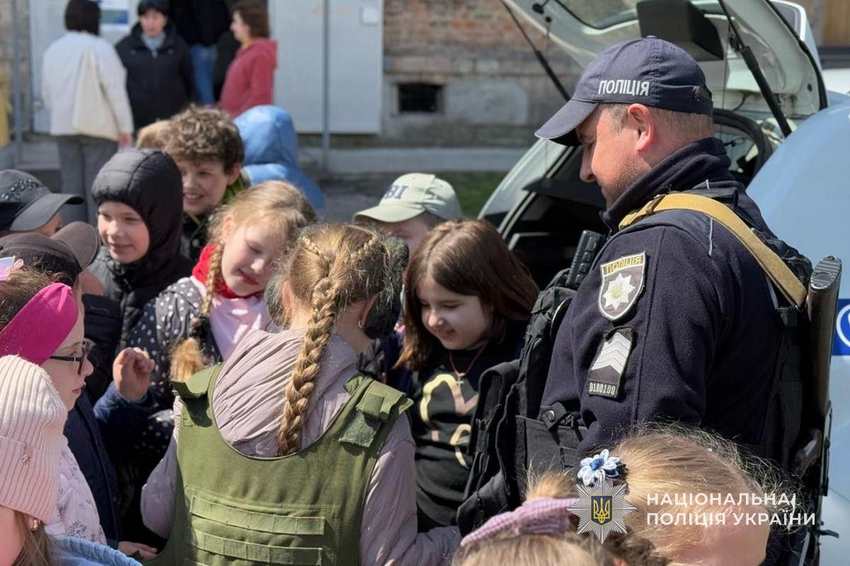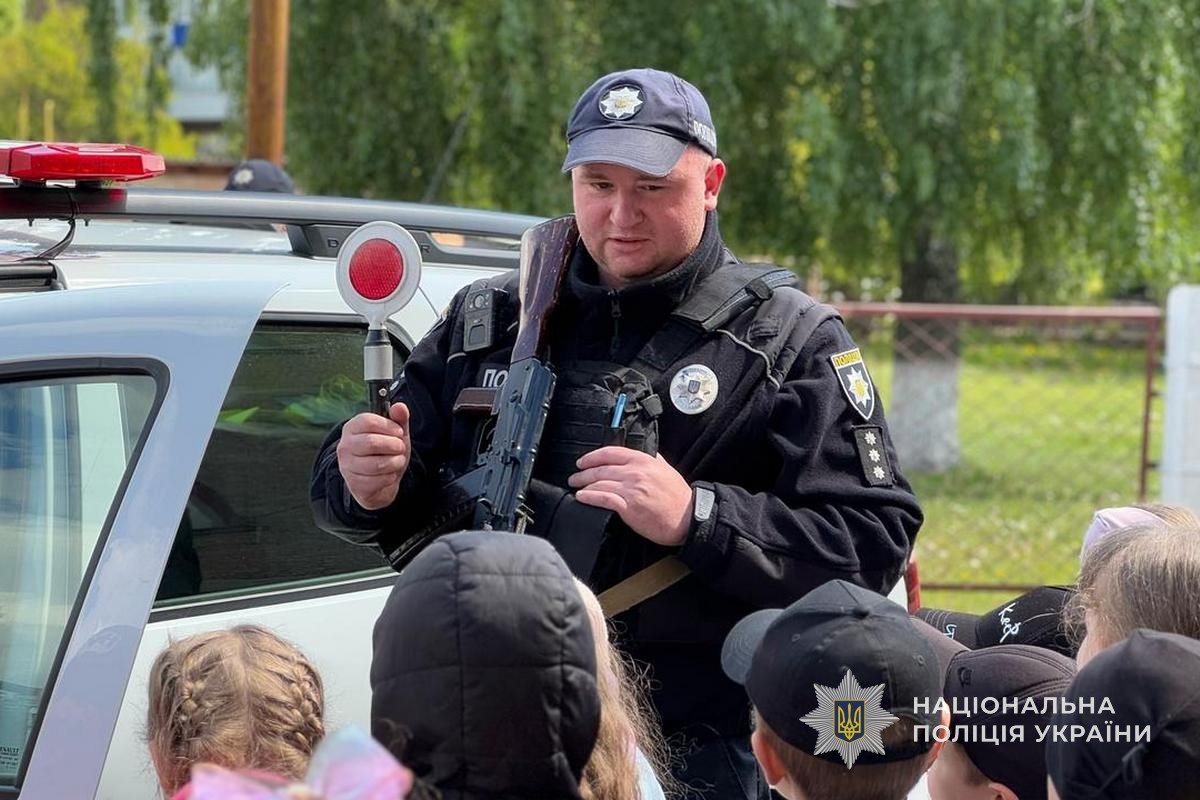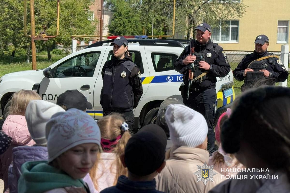 Наприкінці інспектори сектору реагування патрульної поліції продемонстрували учням службовий автомобіль та засоби індивідуального захисту, які використовують у своїй діяльності. Діти з захопленням розглядали автівку, приміряли бронежилети, каски та робили пам’ятні фото.