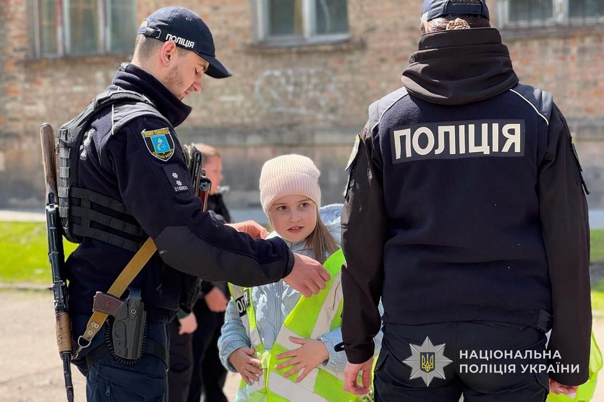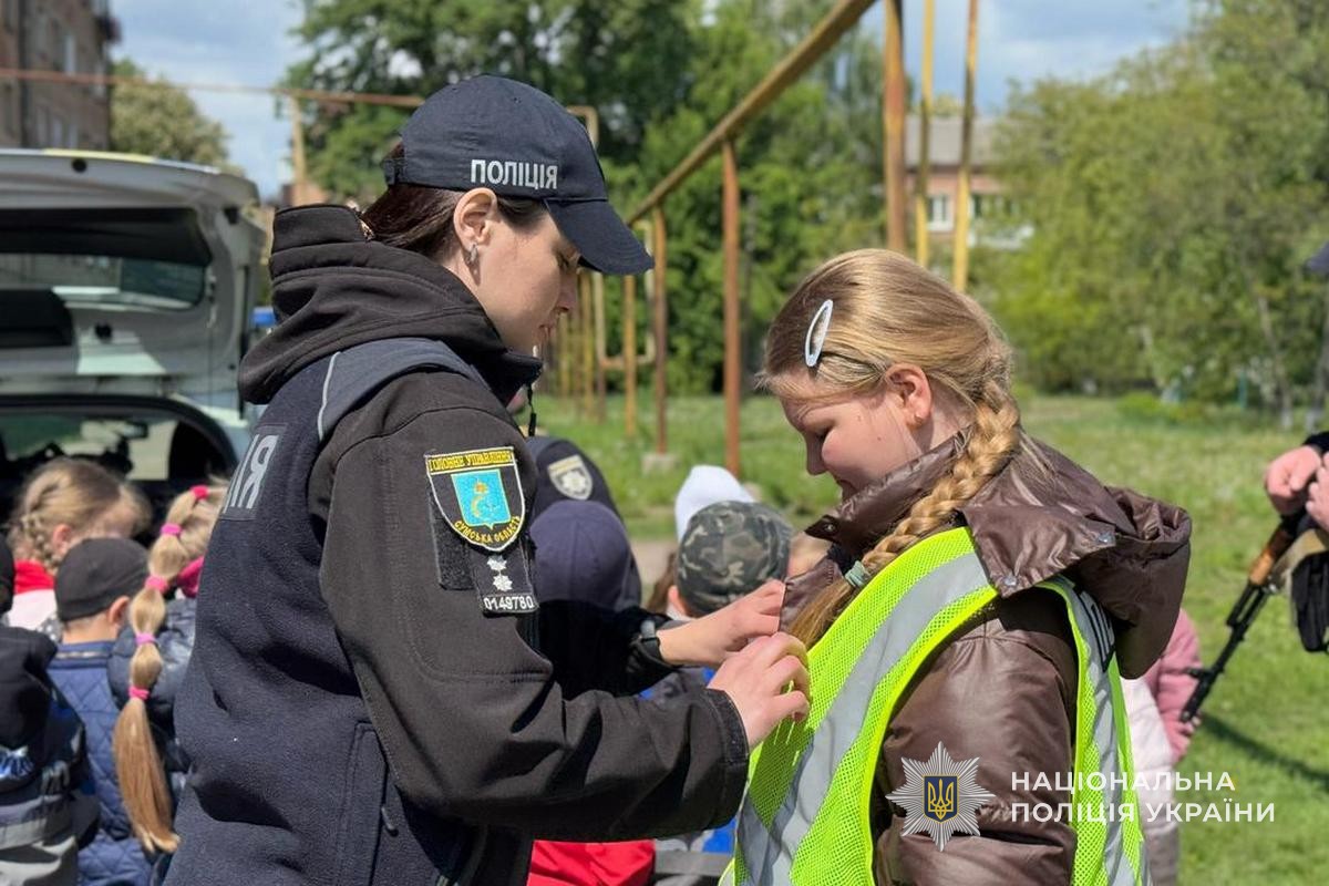 Також правоохоронці пояснили значення деяких дорожніх знаків та разом із дітьми змоделювали кілька ситуацій, які можуть виникнути на дорозі, й розібрали, як правильно в них діяти. Зазначили важливість використання світловідбивних елементів на одязі та подарували дітям флікери, аби ті були помітнішими в темну пору доби.
