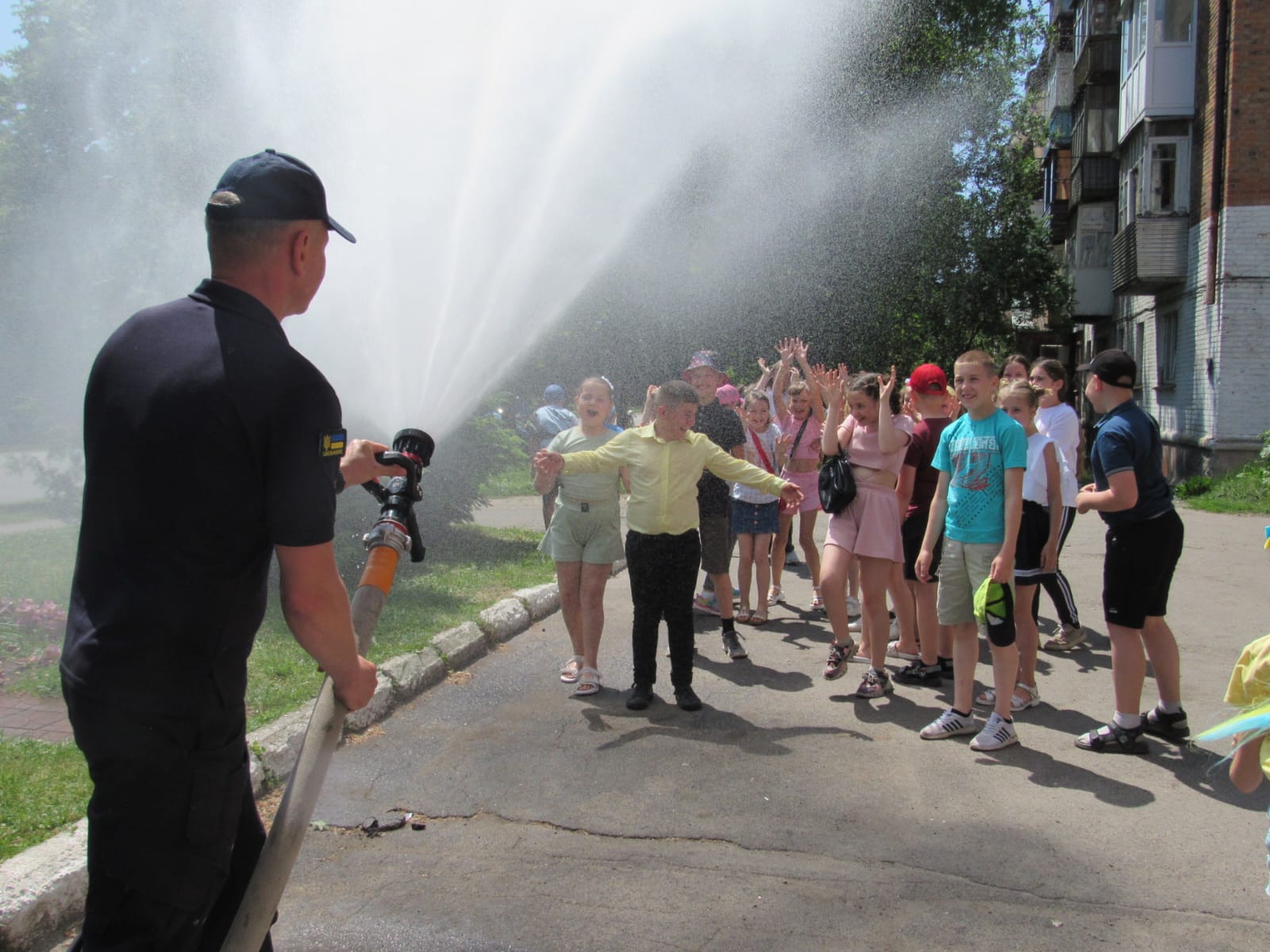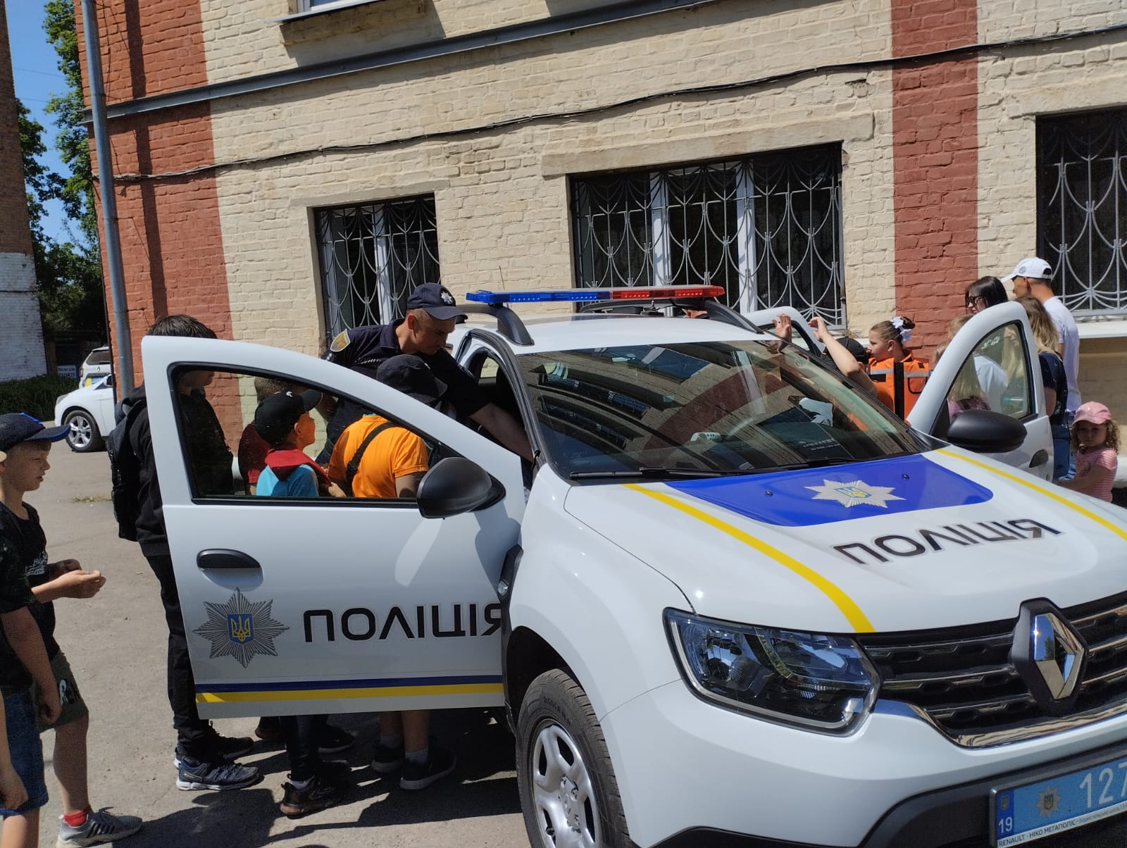 Поліцейські привітали дітей із настанням літніх канікул та вручили їм сувеніри. Діти охоче спілкувалися з поліцією та цікавилися їхньою роботою та приймали участь у різноманітних конкурсах.
