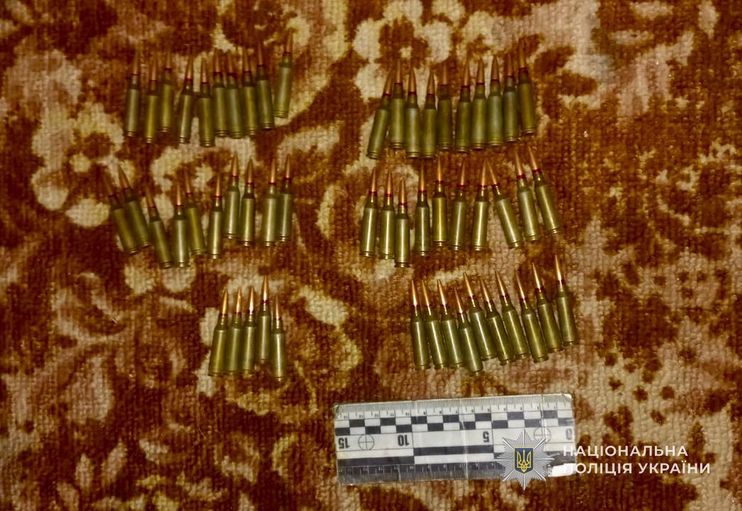 У ході санкціонованого обшуку у домоволодінні 42-річного чоловіка, слідчі поліції виявили 55 набоїв калібру 5,45 та подріблену речовину рослинного походження зовні схожу на канабіс.