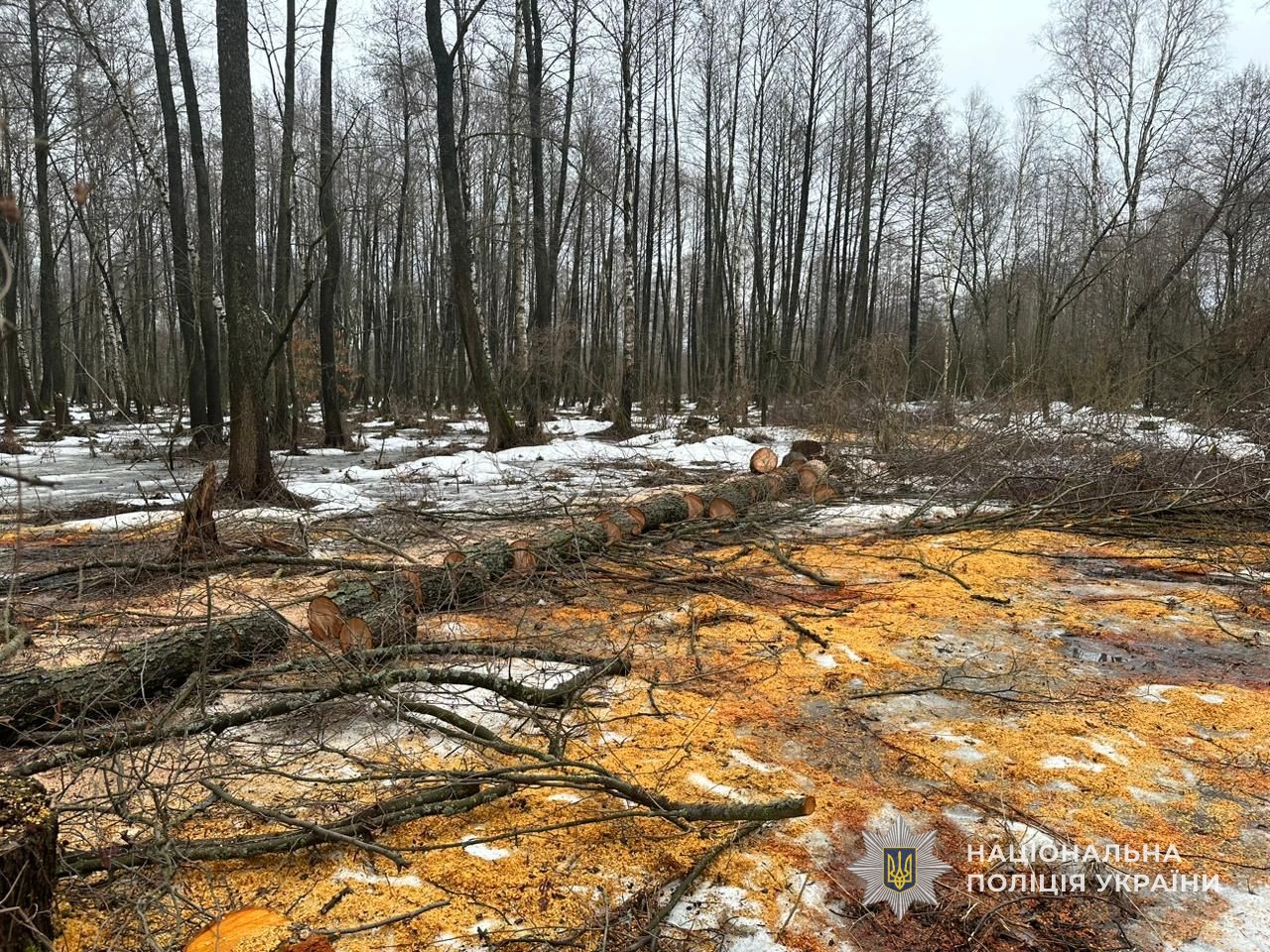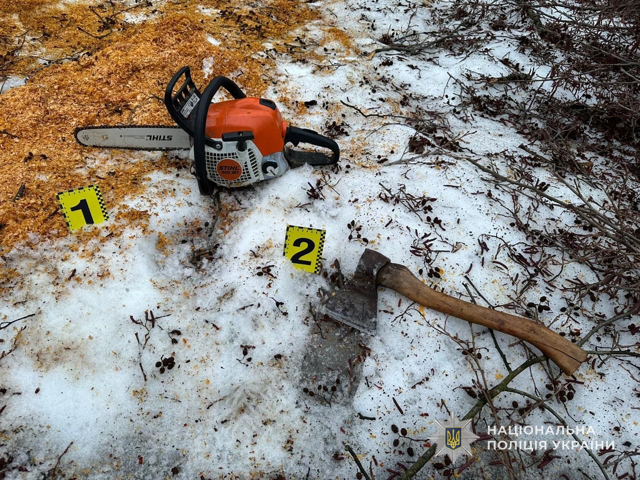У ході огляду місця події слідчі вилучили всю спиляну деревину, бензопилу та сокиру належні зловмиснику.
