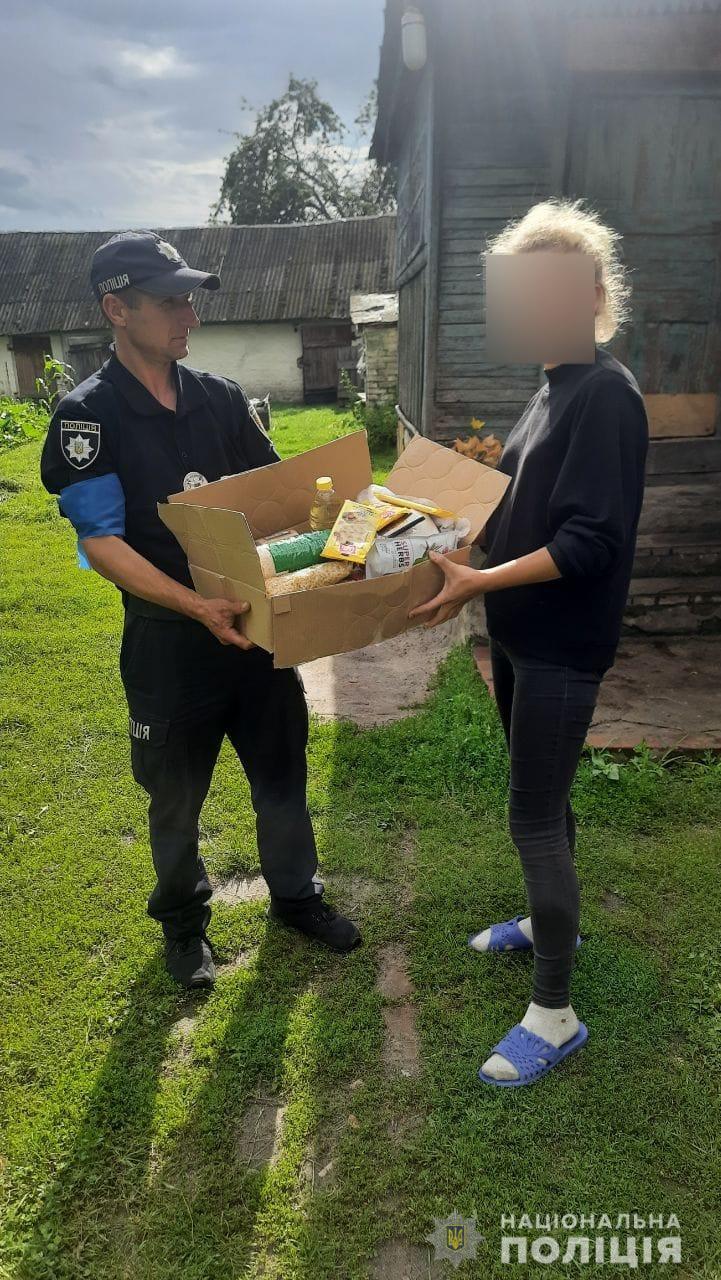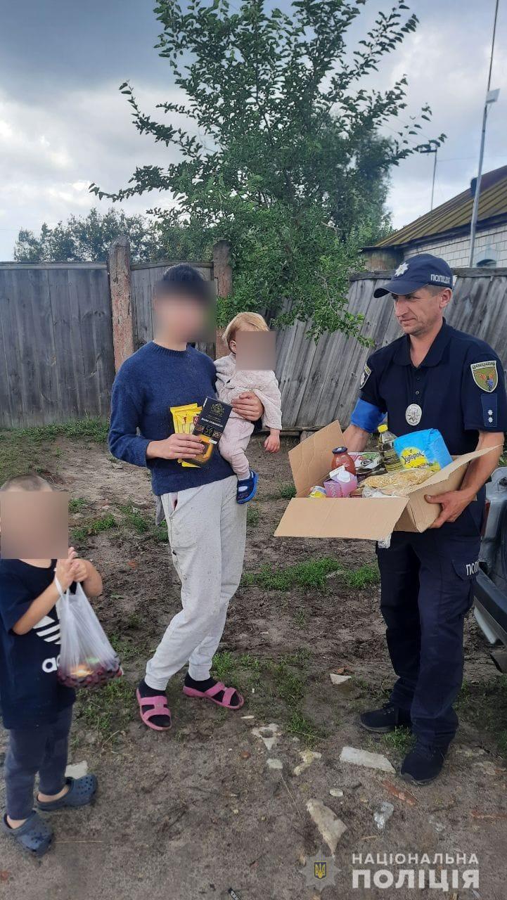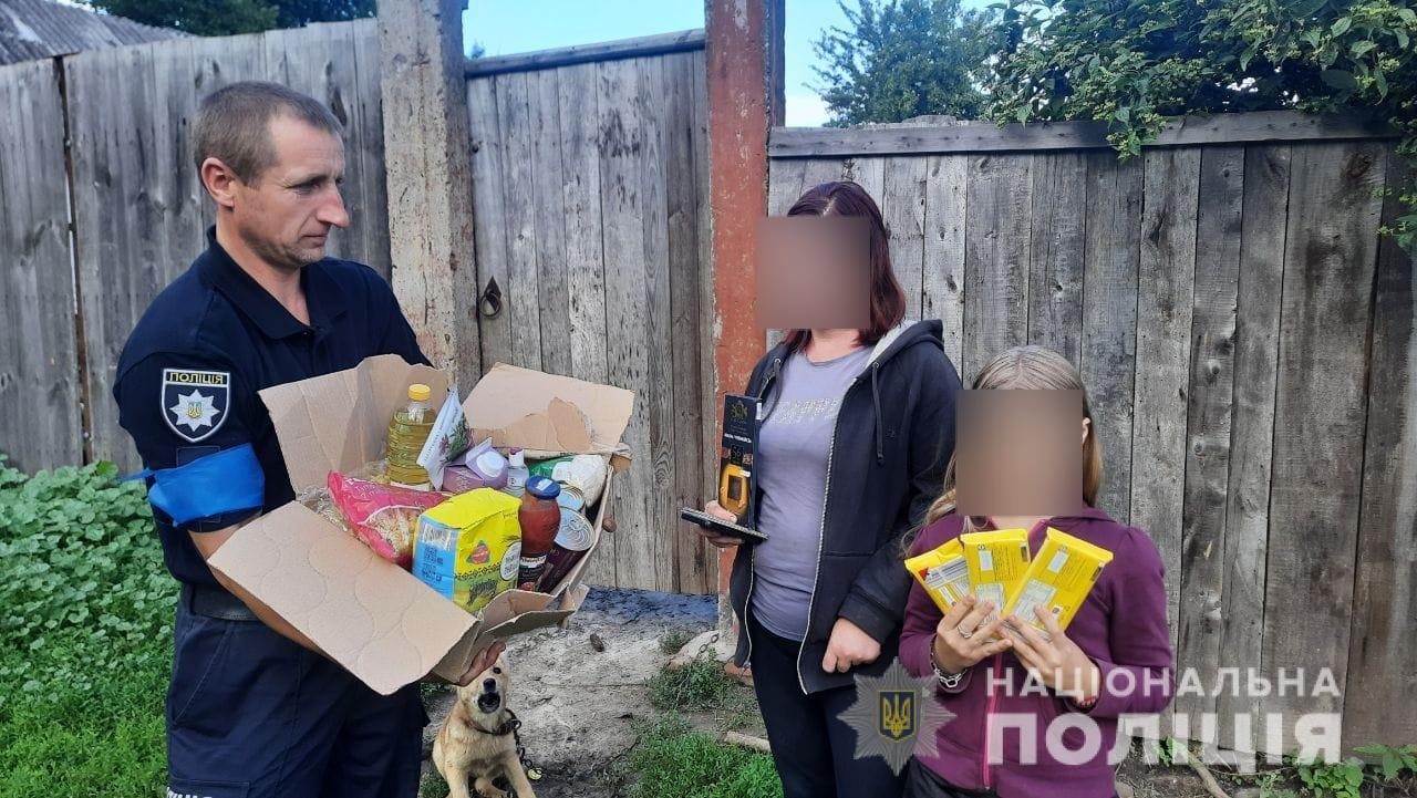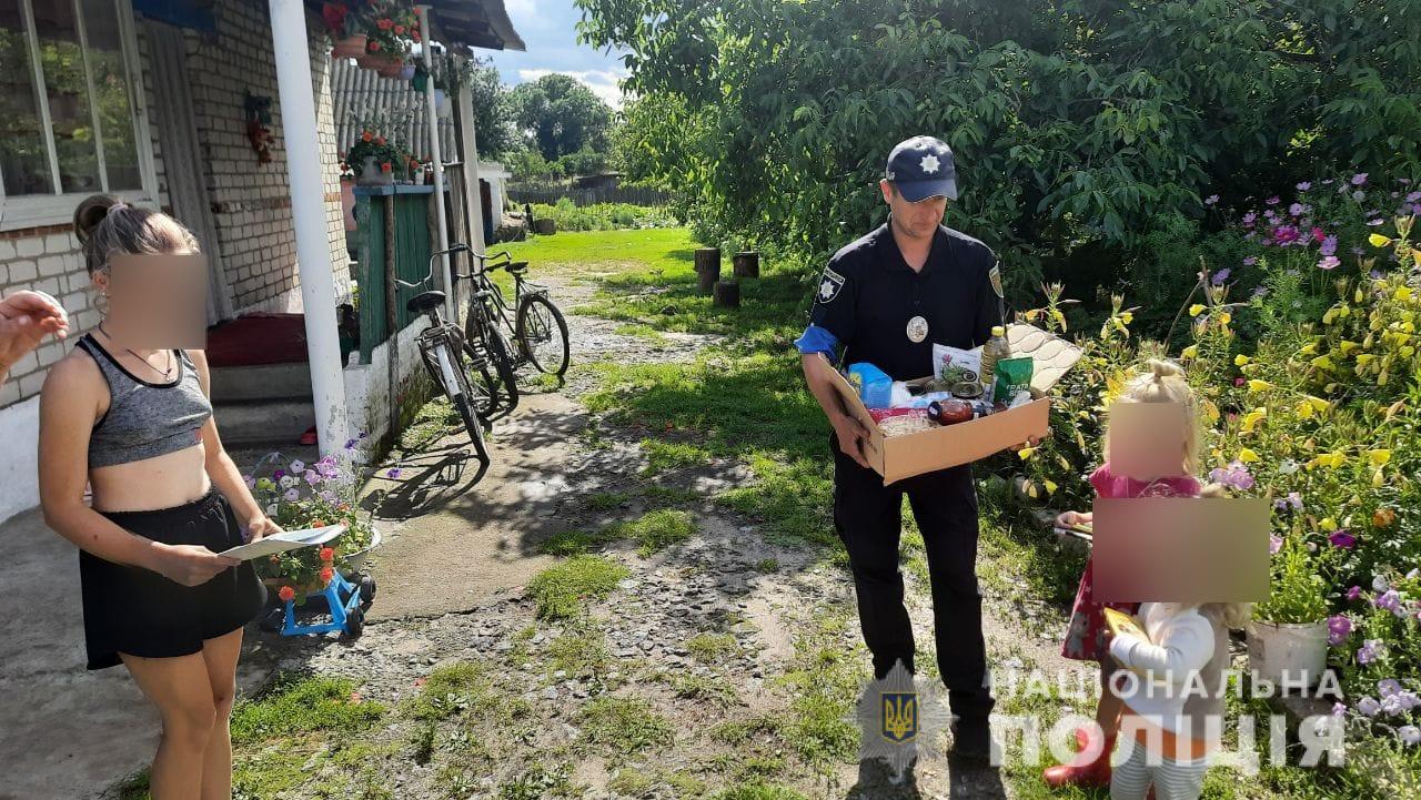 Під час візиту поліцейський вручив батькам речі першої необхідності та продукти харчування.