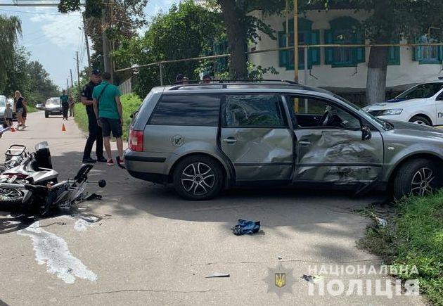 Як попередньо встановили поліцейські, 30-річний місцевий житель рухаючись за кермом мотоциклу "Shineray" допустив зіткнення з автомобілем "Volkswagen Passat", за кермом якого перебував 32-річний конотопчанин та який виїжджав з прилеглої вулиці. У результаті дорожньо-транспортної пригоди керманич двохколісного отримав численні тілесні ушкодження та був доставлений до лікарні.
