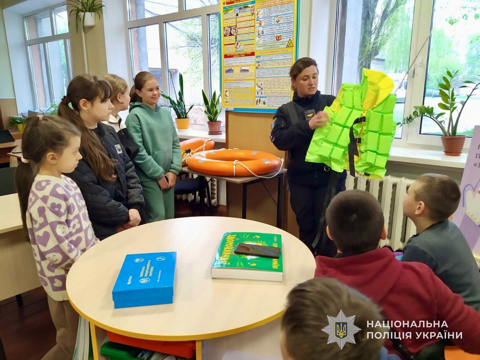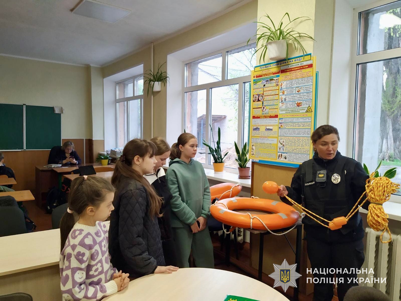Також офіцерка наголосила на тому, що наближається спекотна пора року і більшість з учнів будуть відвідувати пляжі та водоймища. Тому потрібно пам’ятати, що заборонено купатися у не відведених для цього місцях, не можна пірнати з пірсів та обривів і краще не заходити у воду поодинці. Разом з учнями оглянули засоби, що допомагають триматися на воді.
