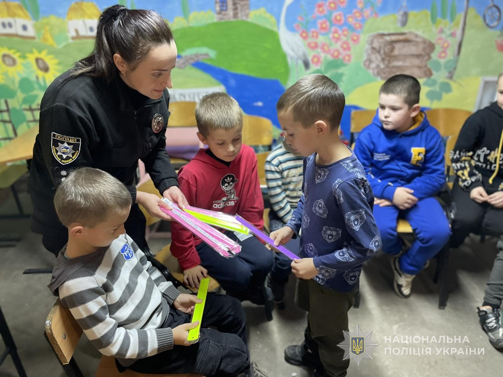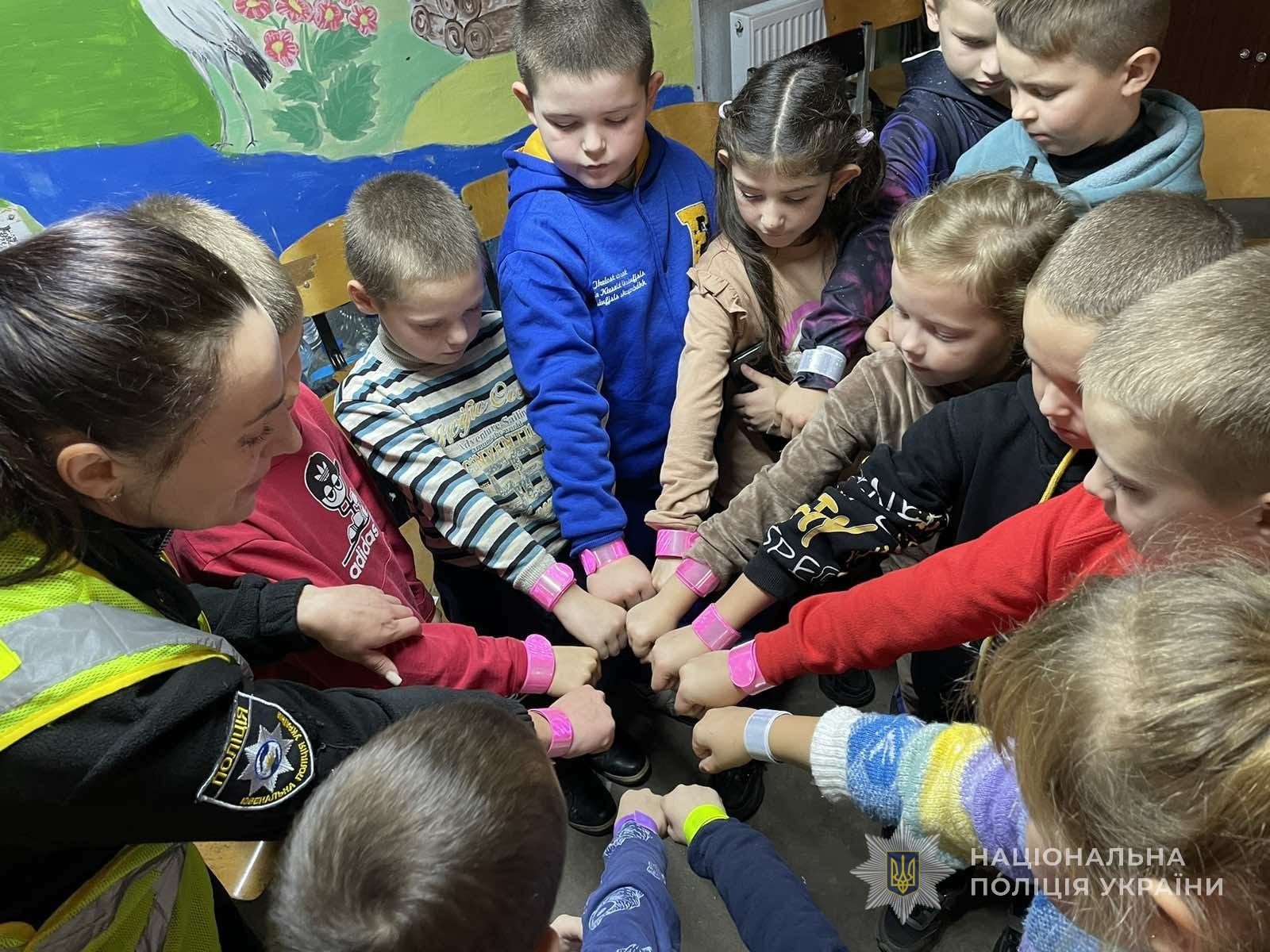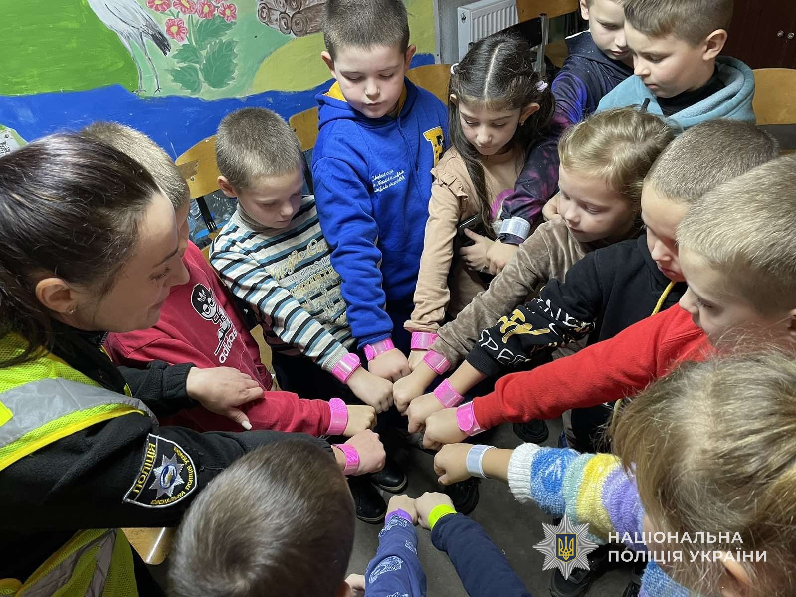 Інспекторка наголосила дітлахам про необхідность носіння світлоповертаючих елементів на одязі, особливо в темну пору доби. Крім того, діти спробували себе в ролі поліцейських, приміряли світловідбиваючі жилети.