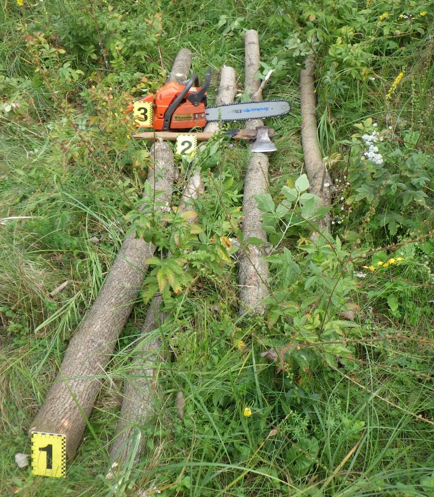 З місця події правоохоронці вилучили деревину, бензопилу, сокиру та пляшки з паливно-мастильними матеріалами.