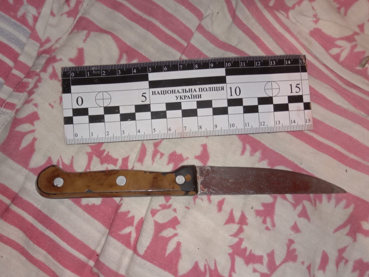 На місце події негайно виїхала слідчо-оперативна група поліції. У ході проведення першочергових слідчих дій правоохоронці встановили, що під час спільного розпиття спиртних напоїв в будинку потерпілої, між нею та її знайомим стався конфлікт. В ході словесної перепалки підозрюваний схопив кухонний ніж та завдав ним два удари в область живота та плеча жінці.