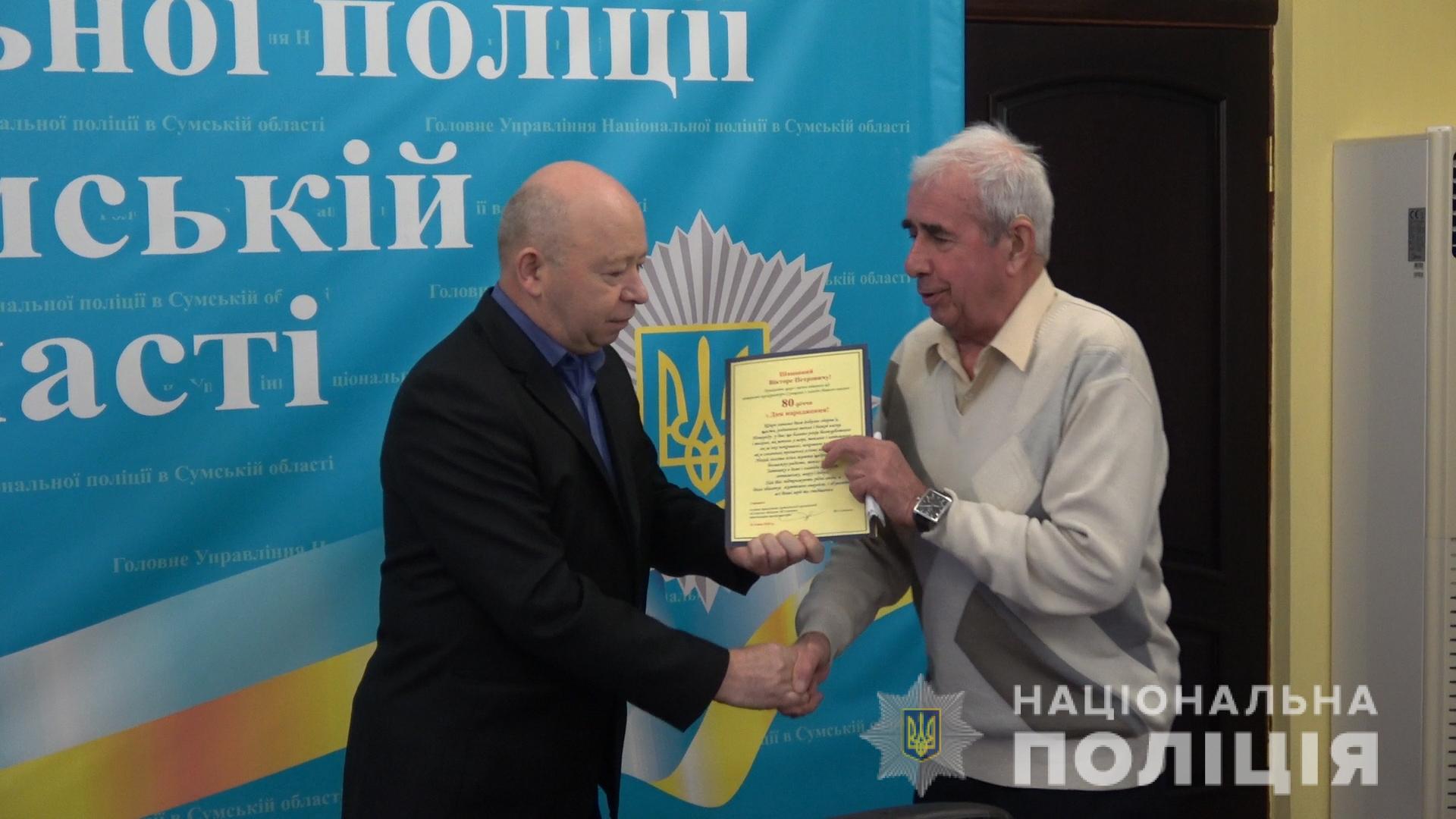 Вручаючи імениннику квіти, подарунок та вітальну адресу, Андрій Пасічник, тимчасово виконуючий обов‘язки начальника ГУНП в області, побажав йому міцного здоров‘я та довгих років життя: «Від імені керівництва ГУНП та себе особисто щиро Вам дякую за неоціненний труд по захисту законності та правопорядку, і за той безмежний досвід, який Ви передаєте молодим працівникам поліції. Від усієї душі бажаю вам здійснення заповітних мрій та сподівань, миру та злагоди, безмежного щастя і добра».