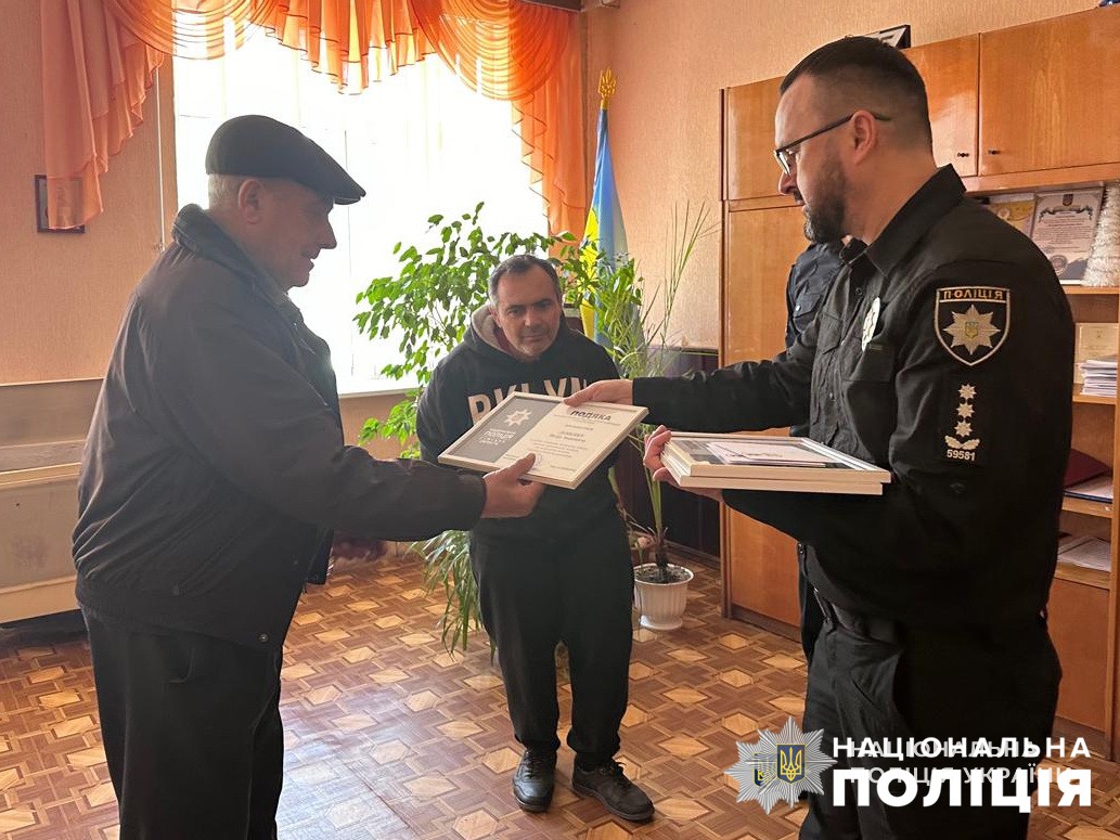 За проявлену сміливість і активну допомогу в затриманні злочинця троє місцевих мешканців – Микиша Олександр Васильович, Доценко Петро Іванович та Бойко Віктор Іванович – отримали подяки від Головного управління Національної поліції в Сумській області. Заступник керівника обласної поліції Роман Даценко особисто передав нагороди двом із чоловіків. Трєтій не зміг бути присутній під час вручення, тож отримає свою відзнаку пізніше.
