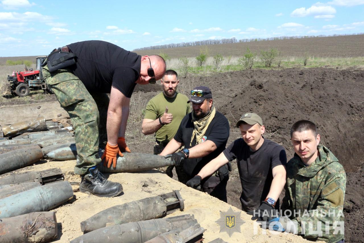 Нерозірвані російські артилерійські снаряди, протитанкові та протипіхотні міни, пастки «розтяжки» та інші небезпечні сюрпризи від ворога – щоденно, без вихідних поліцейські вибухотехніки проводять огляди та розмінування місцевості.