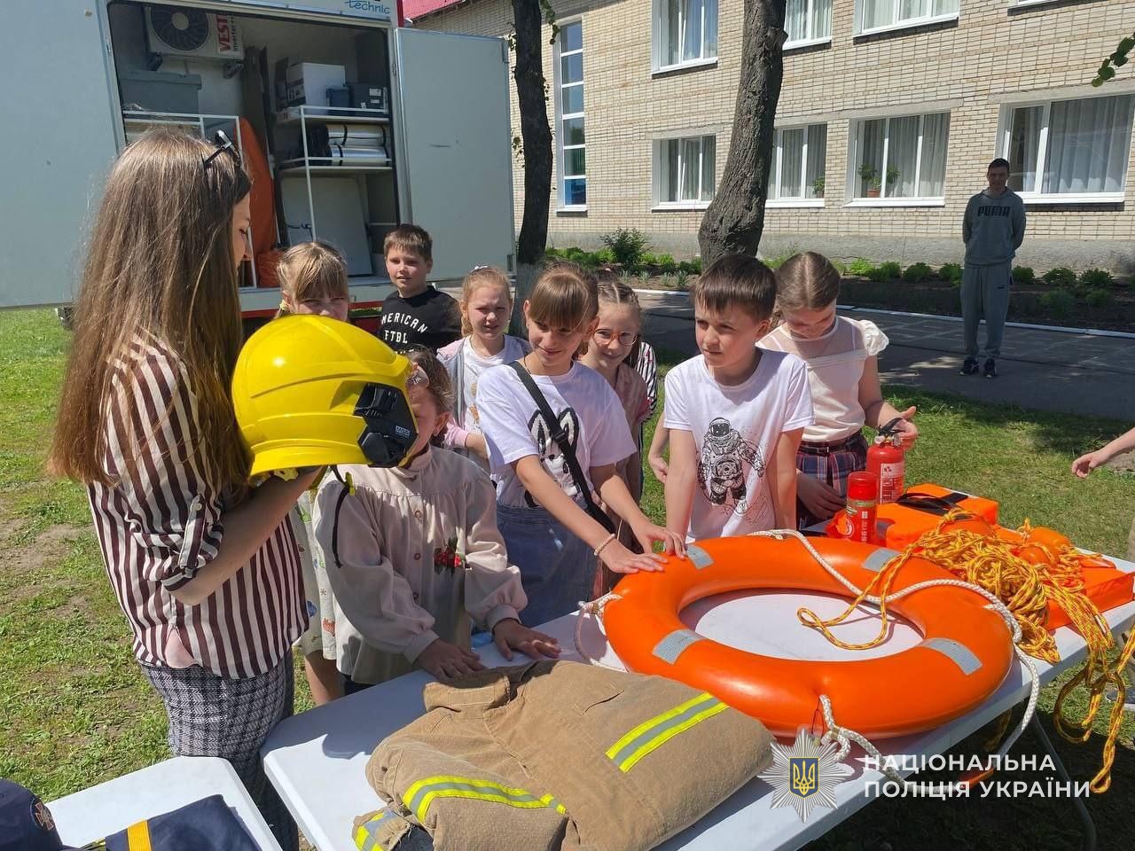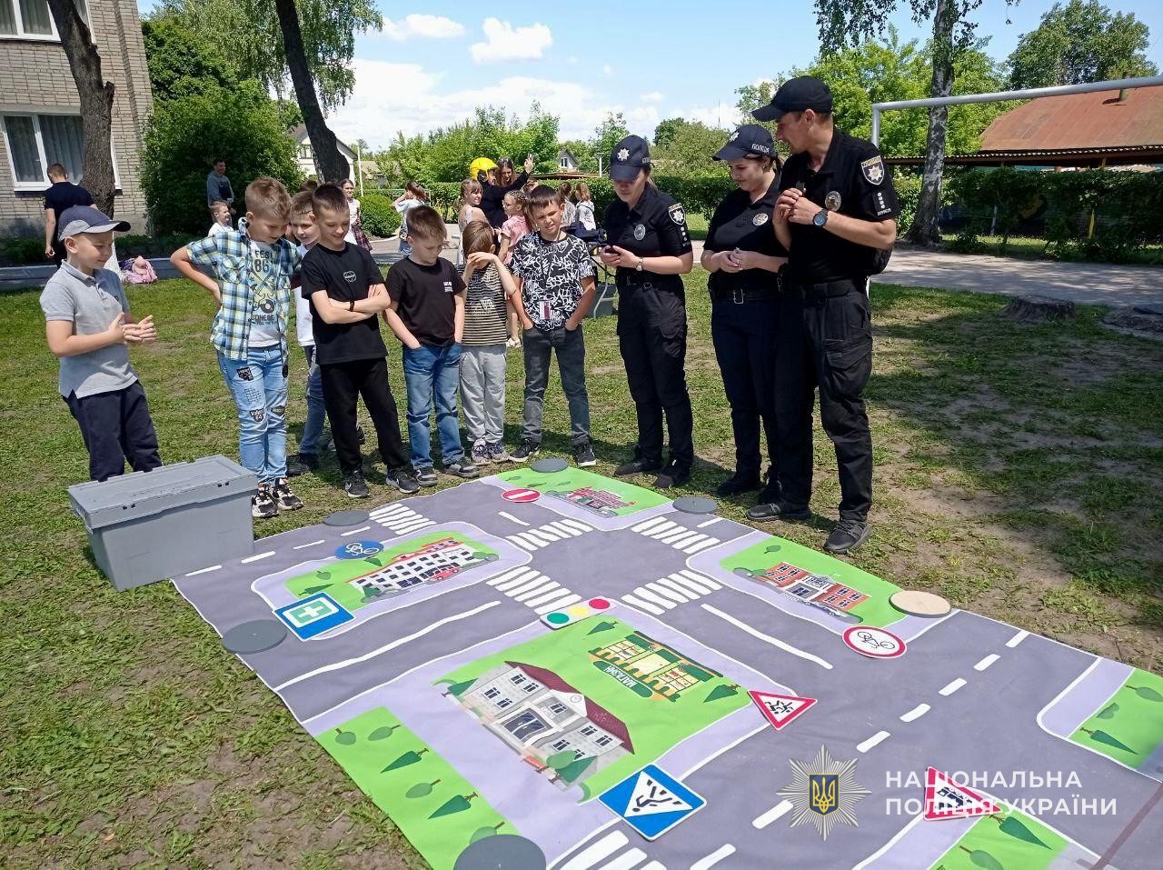Поліцейські нагадали підростаючому поколінню правила дорожнього руху та значення дорожніх знаків, що регулюють рух пішоходів. За допомогою інтерактивної ділянки проїзної частини діти разом з інспекторами змоделювали ситуації, які можуть скластись на дорозі. Також обговорили правила поводження на воді та пляжах біля водойм.