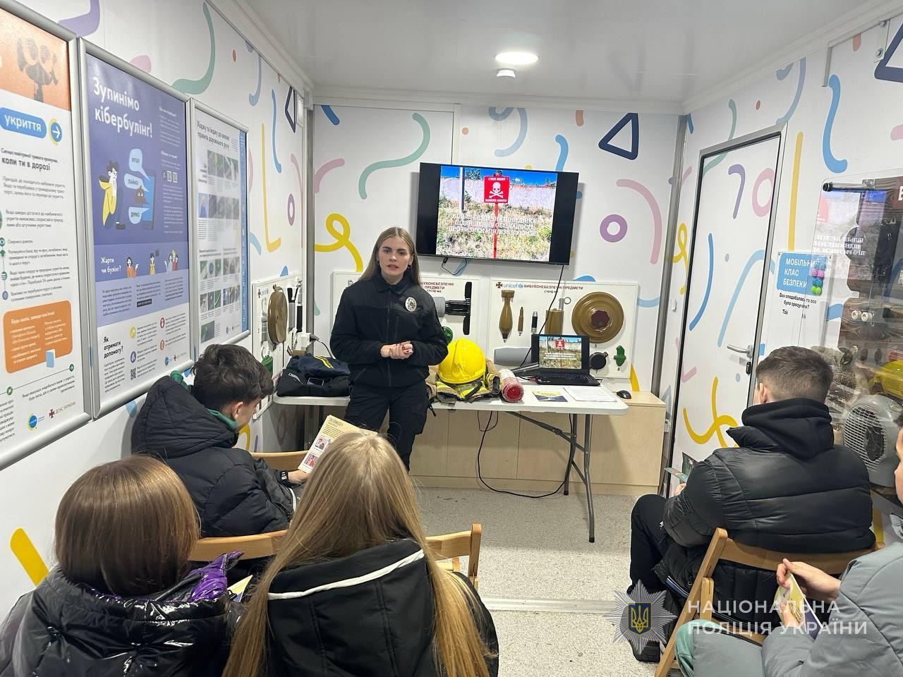 Під час заходу правоохоронці розповіли детально школярам про правила пожежної та мінної безпеки. Зокрема, як необхідно діяти у разі виявлення займання, підозрілих чи вибухонебезпечних предметів та кого потрібно обов’язково інформувати.