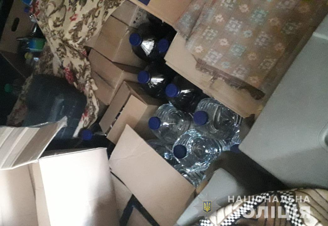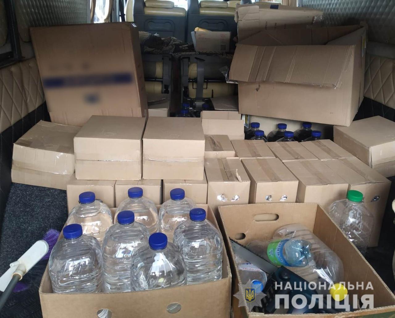 Під час несення служби на блокпосту поблизу Шостки правоохоронці зупинили автомобіль «Mercedes-Benz Sprinter», за кермом якого перебував 43-річний житель Чернігівщини. У ході огляду транспортного засобу працівники поліції знайшли у салоні машини 35 п’ятилітрових пляшок із рідиною схожою на спирт, 19 десятилітрових тетропаків із рідиною схожою на горілку , 14 п’ятилітрових пляшок з рідиною схожою на коньяк та 18 блоків цигарок без марок акцизного податку. Документів на цей товар у водія не було.