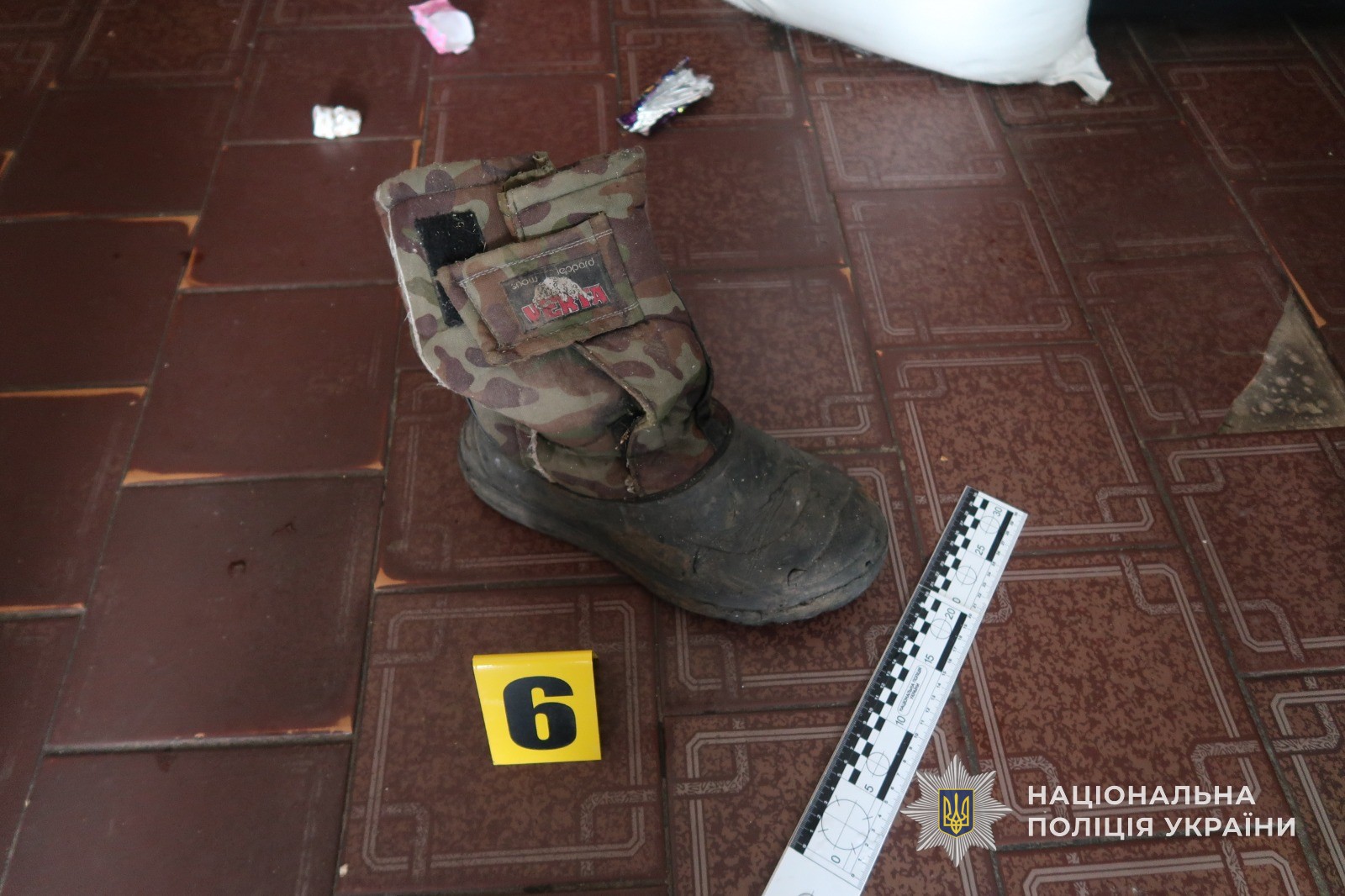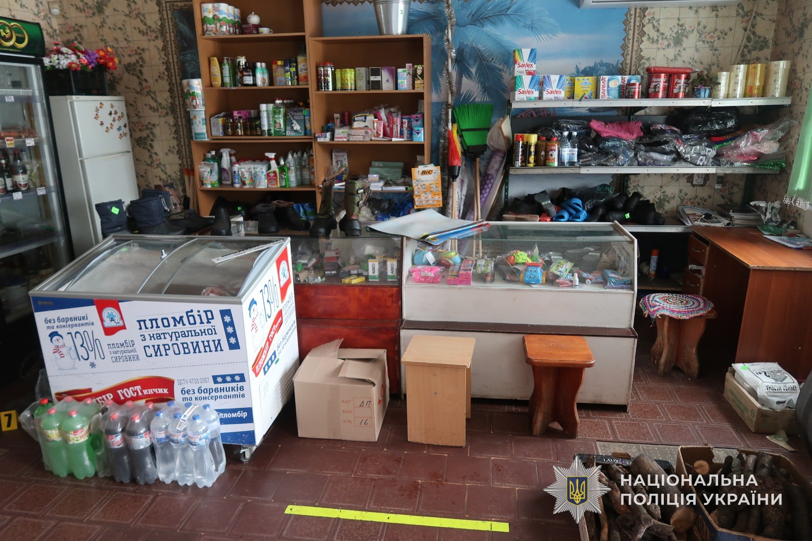 В ході огляду місця події правоохоронці встановили, що невідома особа шляхом пошкодження вікна проникла до приміщення магазину. Неподалік місця проникнення слідчі виявили та вилучили знаряддя злому. Крім того, поліцейські виявили взуття зловмисника, які він «обміняв» на нові чоботи, що знаходилися в магазині для продажу.
