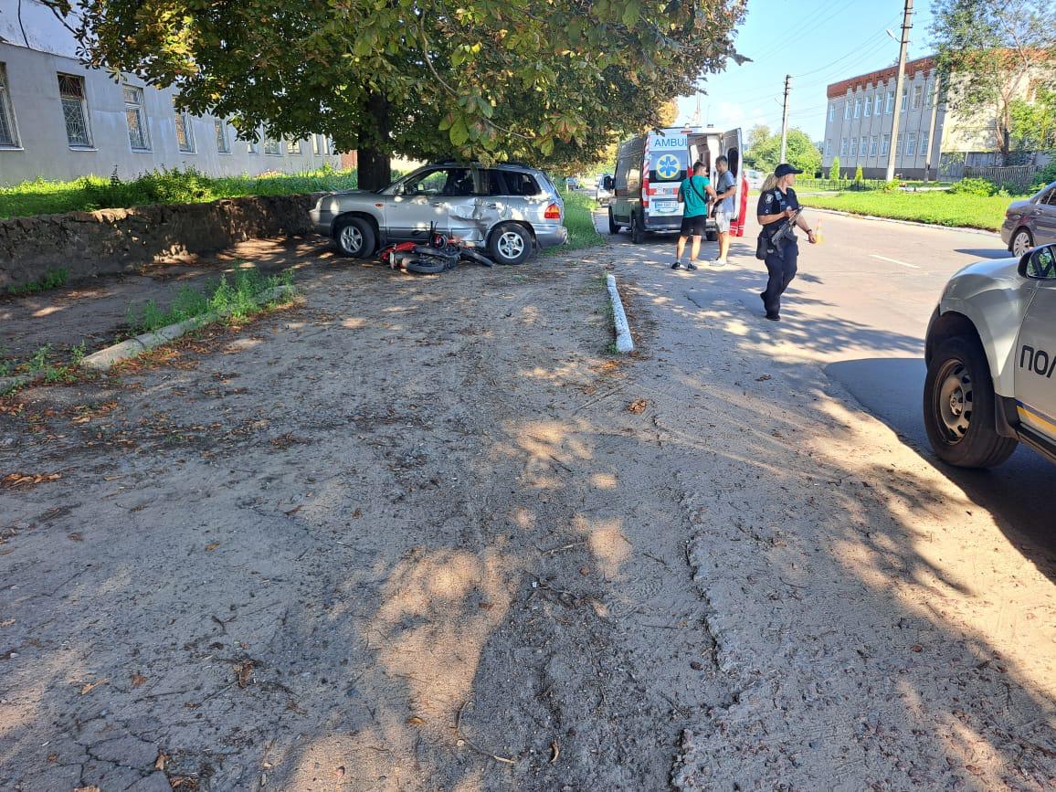 Внаслідок автопригоди 20-річний керманич двоколісного транспорту отримав тілесні ушкодження. Постраждалого госпіталізовано до Шосткинської центральної районної лікарні.