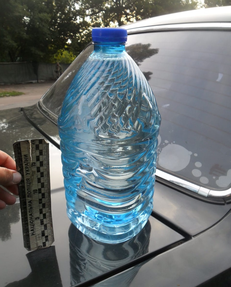 Подія сталася у серпні поточного року, на одному з блокпостів міста Конотоп працівники поліції зупини автомобіль Волга для перевірки. В ході огляду транспортного засобу у салоні автомобіля поліцейські виявили 60 прозорих пластикових пляшок ємністю 5 літрів кожна з прозорою рідиною всередині, схожою на спирт. Все виявлене було вилучене та направлене на експертизу.