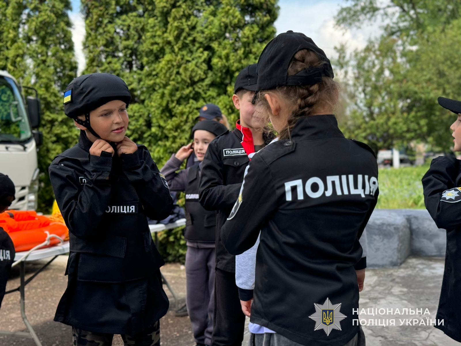 Дітвора з цікавістю вислухала всі настанови та з великим захопленням приміряли формений одяг поліцейських та рятувальників.