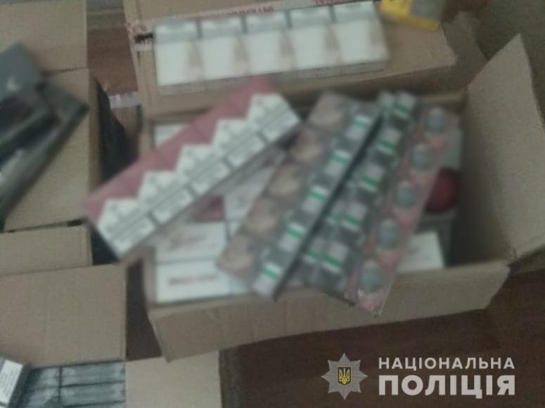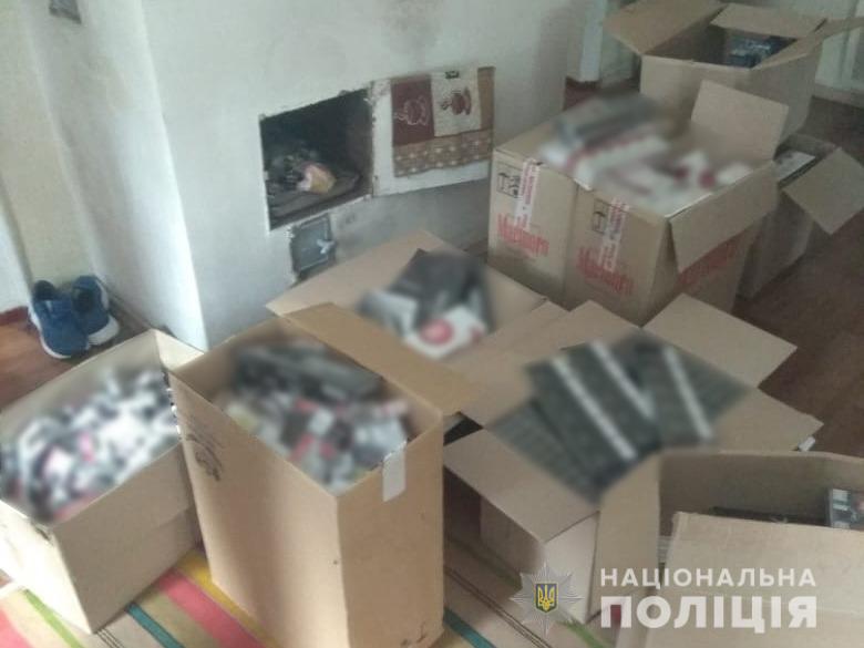 У ході санкціонованого обшуку домоволодіння правопорушника поліцейські виявили та вилучили 3 243 пачки контрафактних цигарок різних марок та виробників, півмішка тютюну , упаковку гільз для куріння та станок для виготовлення цигарок, а також дві пляшки спирту об’ємом по 5 літрів.