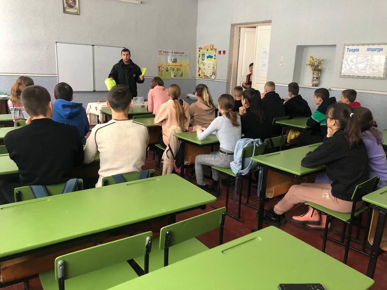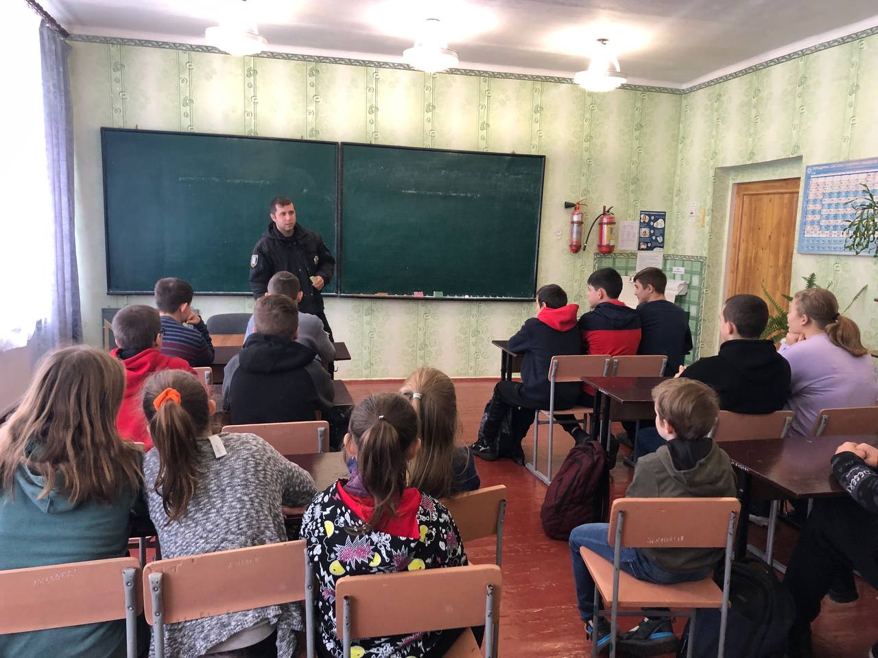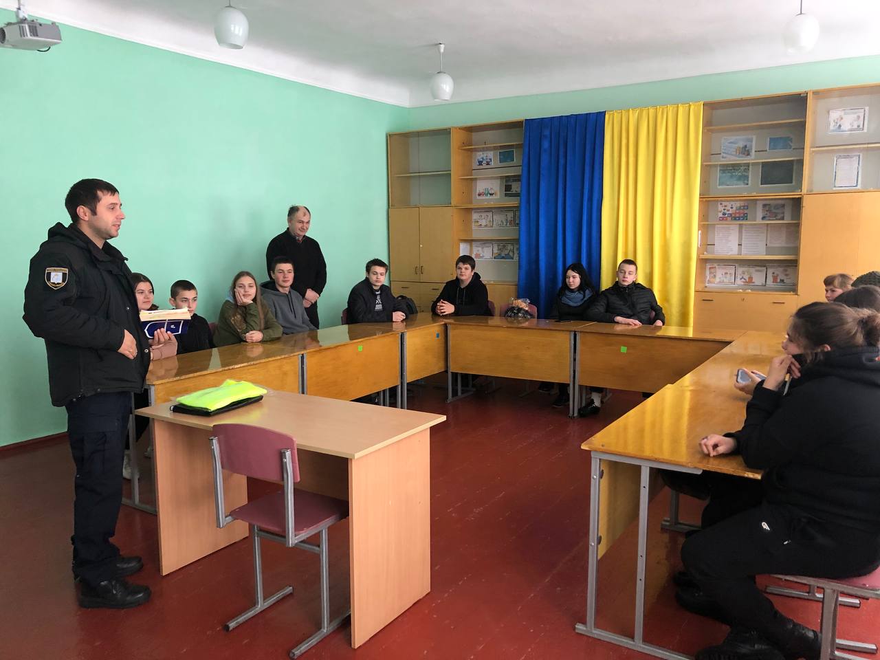 Поліцейський розповідав учням про правила для пішоходів, про особисту безпеку під час руху проїзною частиною, детально зупинився на особливостях пересування дорогами у темну пору доби та в умовах недостатньої видимості. Разом з дітьми розібрали на прикладах помилки водіїв та пішоходів, а також обговорили відповідальність за порушення правил дорожнього руху та вік, з якого вона наступає.