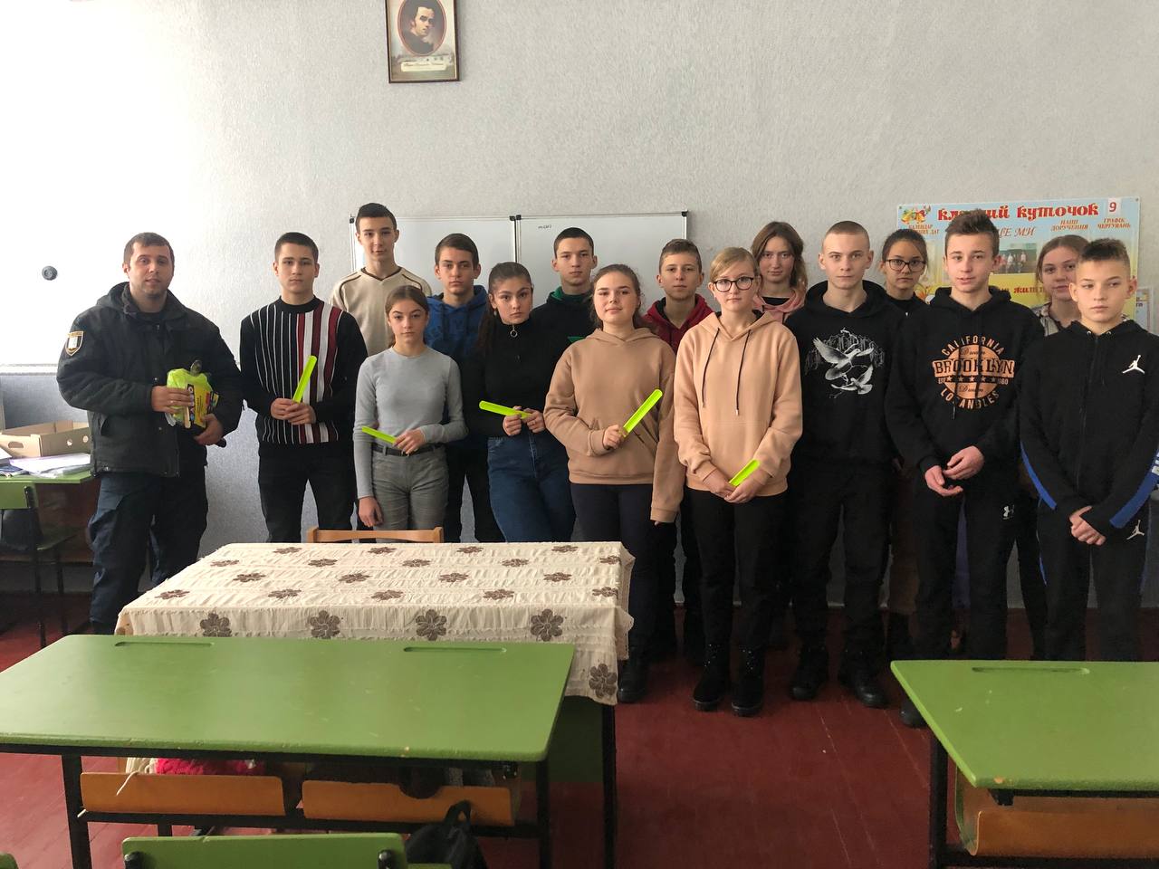 Наприкінці заходів поліцейський офіцер громади роздав дітям світлоповертаючі браслети, щоб вони завжди були помітні для водіїв.